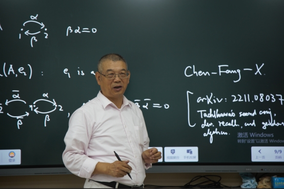 惠昌常教授首先介绍了1958年提出至今未得到解决的Nakayama猜想和后来的 Tachikawa 猜想,以及二者之间的联系。接着详细介绍了镜反射代数的构造、镜反射代数导出等价的条件,以及镜反射代数在更进一步理解Tachikawa 猜想中所起的重要作用。根据自己的工作经验,将复杂问题简单化,为同学们作了生动、详尽的介绍,鼓励同学们深入研究。
