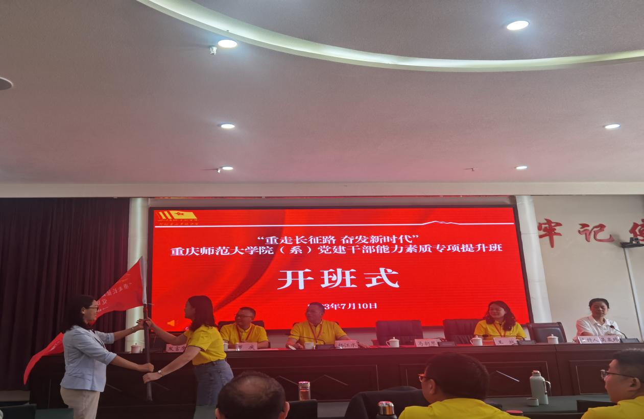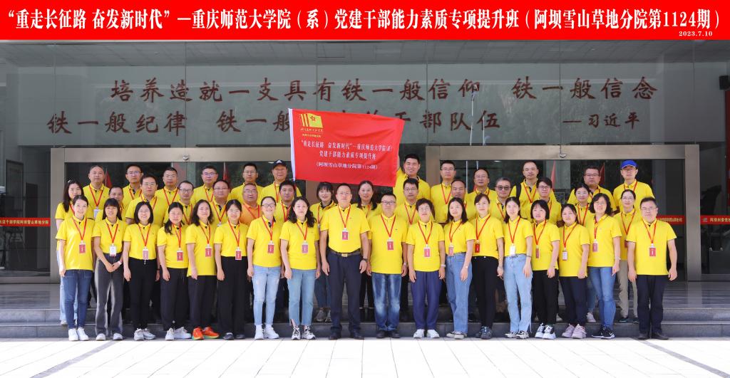 2023年7月10日上午,“重走长征路 奋发新时代”——太阳集团tcy8722院(系)党建干部能力素质专项提升班开班仪式在四川长征干部学院阿坝雪山草地分院雪山厅顺利开班。太阳集团tcy8722党委书记杨江水、教育科学学院党委书记罗庆、外国语学院党委书记王放、阿坝雪山草地分院副院长马朝勤以及45名学校培训班成员参加本次开班仪式。开班仪式由阿坝雪山草地分院培训科副科长吴葳玮主持。