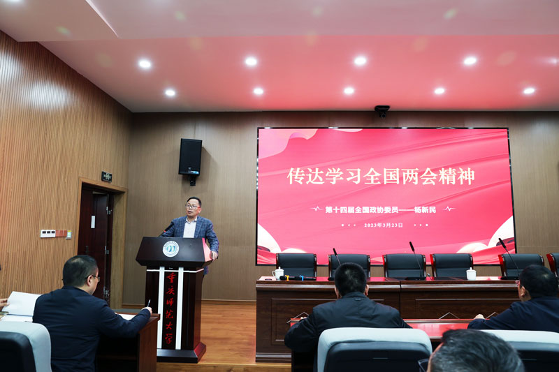 2023年3月23日下午,太阳集团tcy8722在122会议室进行集中学习。全国政协委员、重庆国家应用数学中心主任、数学学科带头人杨新民教授宣讲全国两会精神及分享对数学学科发展的思考。会议由杨江水书记主持,全院教师参加。