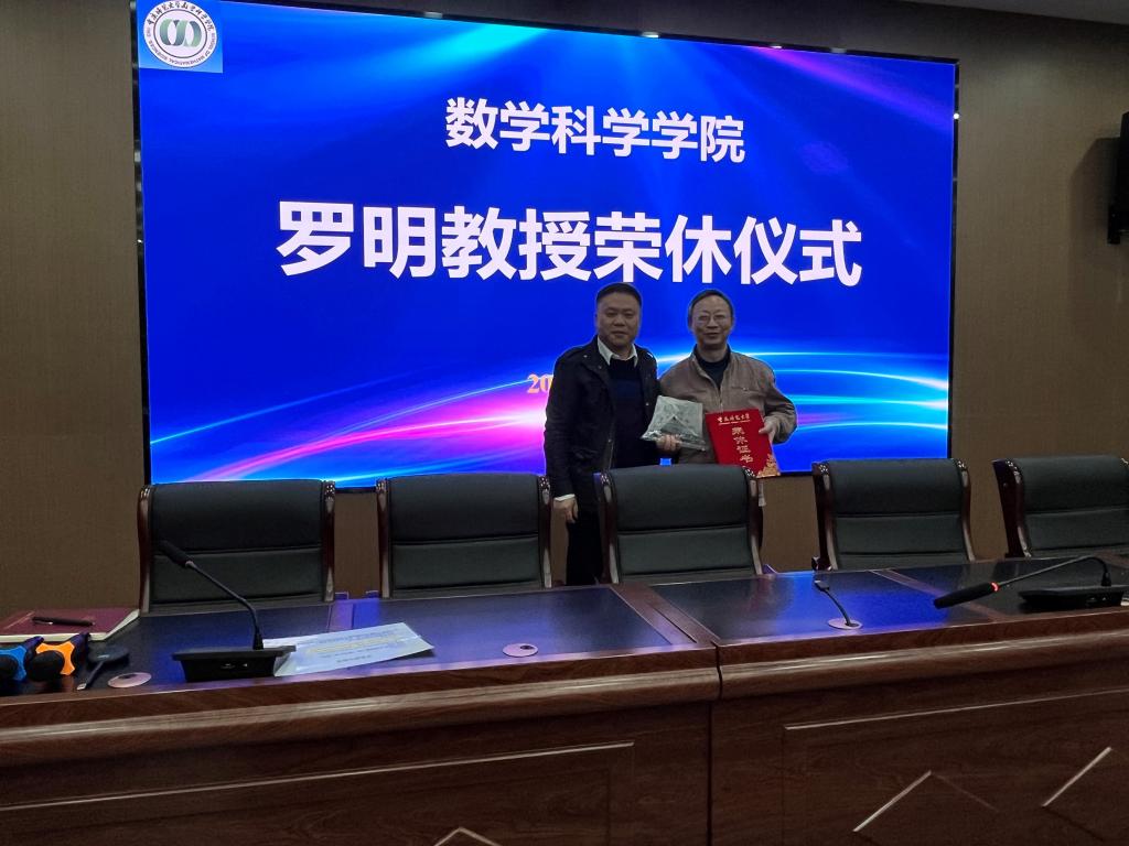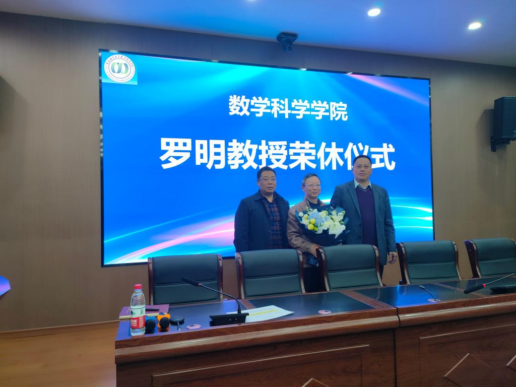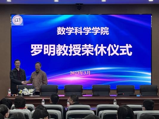 2023年3月16日下午,太阳集团tcy8722罗明教授荣休仪式在122会议室举行。学校党委教师工作部副部长、人事处副处长段慧明,离退休处处长刘燕、离退休数学支部委员叶武琼、学院党委书记杨江水、院长杨志春、副书记袁小于出席了仪式。仪式由杨江水书记主持,全院教师参加。