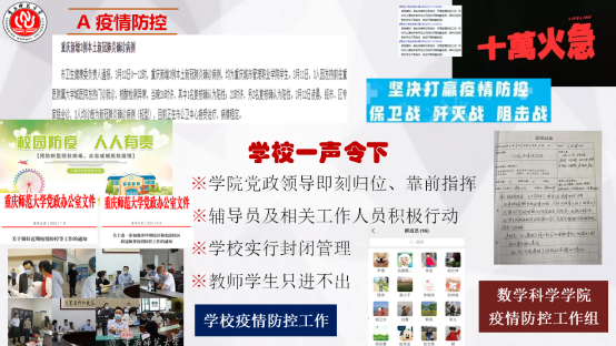 杨书记从十万火急、核酸检测、数据统计、查寝摸排、物资发放、工作生活状态、领导关怀指导、两手抓两不误、关心寄语、回头看思考十个方面进行了小结,通过近期大量身边工作的图片和点点滴滴进行了回顾。疫情当前,学院党政领导即刻归位、靠前指挥,辅导员及相关工作人员积极行动。学院成立了疫情防控工作小组,每天梳理疫情工作并汇报师生动态情况。一张张照片生动地展现了疫情期间辅导员艰苦的办公和住宿环境。大家众志成城,齐心抗疫,担当起守护好师生生命安全和身体健康的光荣使命,坚决打赢疫情防控保卫战、阻击战,确保了疫情防控工作的顺利完成。并就提高了认识、接近了实战、找到了差距、锻炼了队伍、改进的方向进行了反思,进一步提升全体教职工“重要、危急、精准、责任、科学”的疫情防控要求。