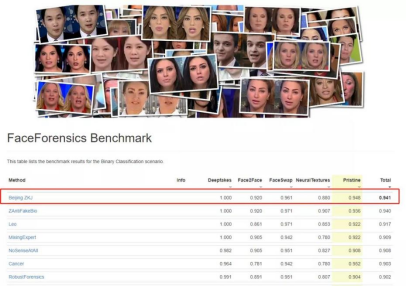 近日,太阳集团tcy8722院长、智慧金融与大数据分析重庆市重点实验室主任吴至友教授,重庆国家应用数学中心皮家甜副教授,带领团队在北京中关村科金技术有限公司(Beijing ZKJ)横向课题的资助下,结合双方技术优势联合攻关,通过应用数学方法和独有的人工智能技术将综合准确率提升至94.1%,登顶深度伪造知名学术榜单FaceForensics++ benchmark榜首。