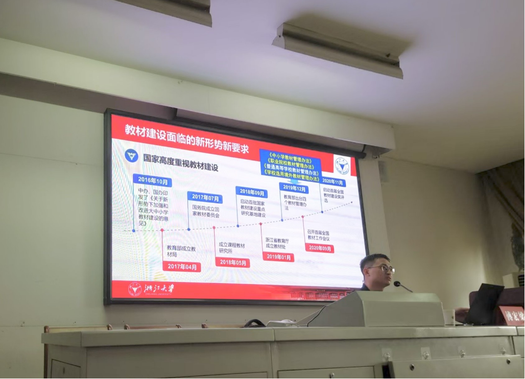 18日上午,浙江大学出版社数字编辑傅宏梁为学员们讲授 《数字教育背景下高校教材建设新形势与新要求》。他分析了当前高校教材建设的发展方向。他指出,随着信息技术的快速发展,数字教材已经成为教育领域的重要发展方向,并介绍浙江大学出版社在数字教材建设方面的探索与实践。