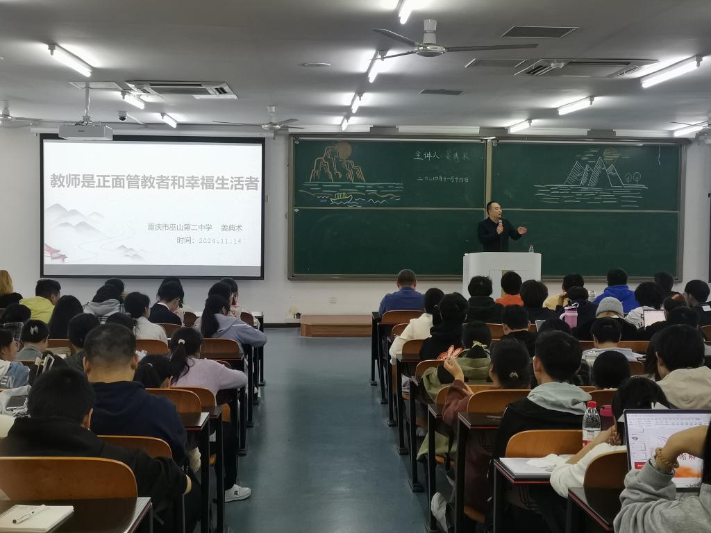 11月14日下午,由学校教务处主办、太阳集团tcy8722承办的第六期“优师大讲堂”在特教楼T2213举行。重庆市巫山第二中学副校长姜典术担任特邀主讲嘉宾,讲座由太阳集团tcy8722党委副书记袁小于主持,全校“优师计划”学生到场学习。