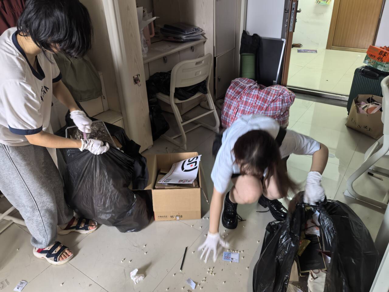为响应学校“留下一间洁净宿舍,续写一份重师情缘”的号召,120余位师生党员分成六个组,全覆盖6个责任区180余间毕业生寝室,积极协助毕业生打包行李、打扫寝室卫生等主题党日活动中,以实际行动践行“全心全意为人民服务”的根本宗旨,展现了新时代共产党员的责任与担当。学院将毕业生寝室打扫转化为党建引领下的实践课堂,推动责任意识与爱校情怀落地生根,为毕业生文明离校注入红色动能。