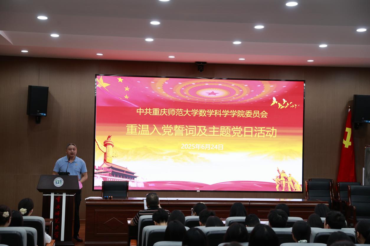为深入学习贯彻习近平新时代中国特色社会主义思想,进一步增强党组织的凝聚力和战斗力,激励全体党员坚定理想信念、践行初心使命,2025年6月24日下午,中共太阳集团tcy8722委员会于汇贤楼122会议室开展“铭记誓言践初心,志愿服务担使命”主题党日活动,学院全体非毕业生党员以及6个学生党支部书记参与本次活动,活动由党委副书记袁小于同志主持。