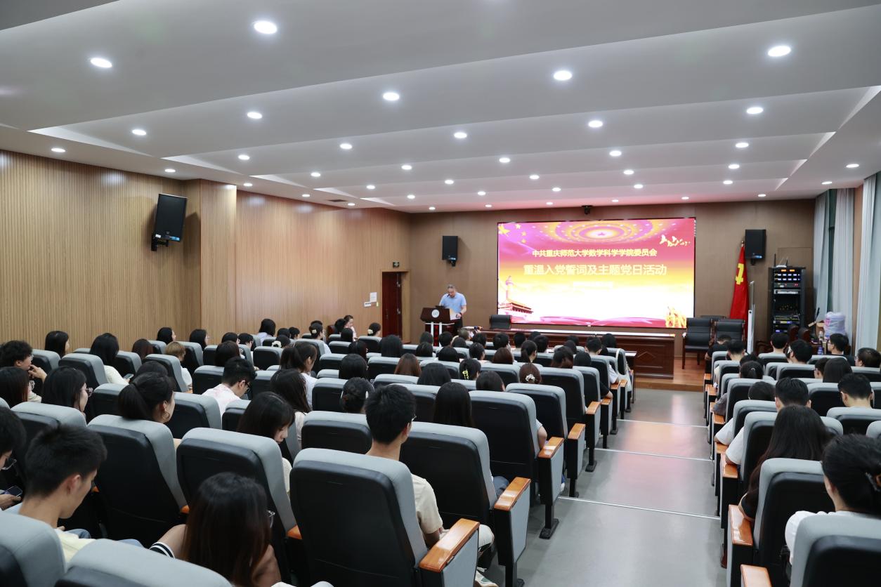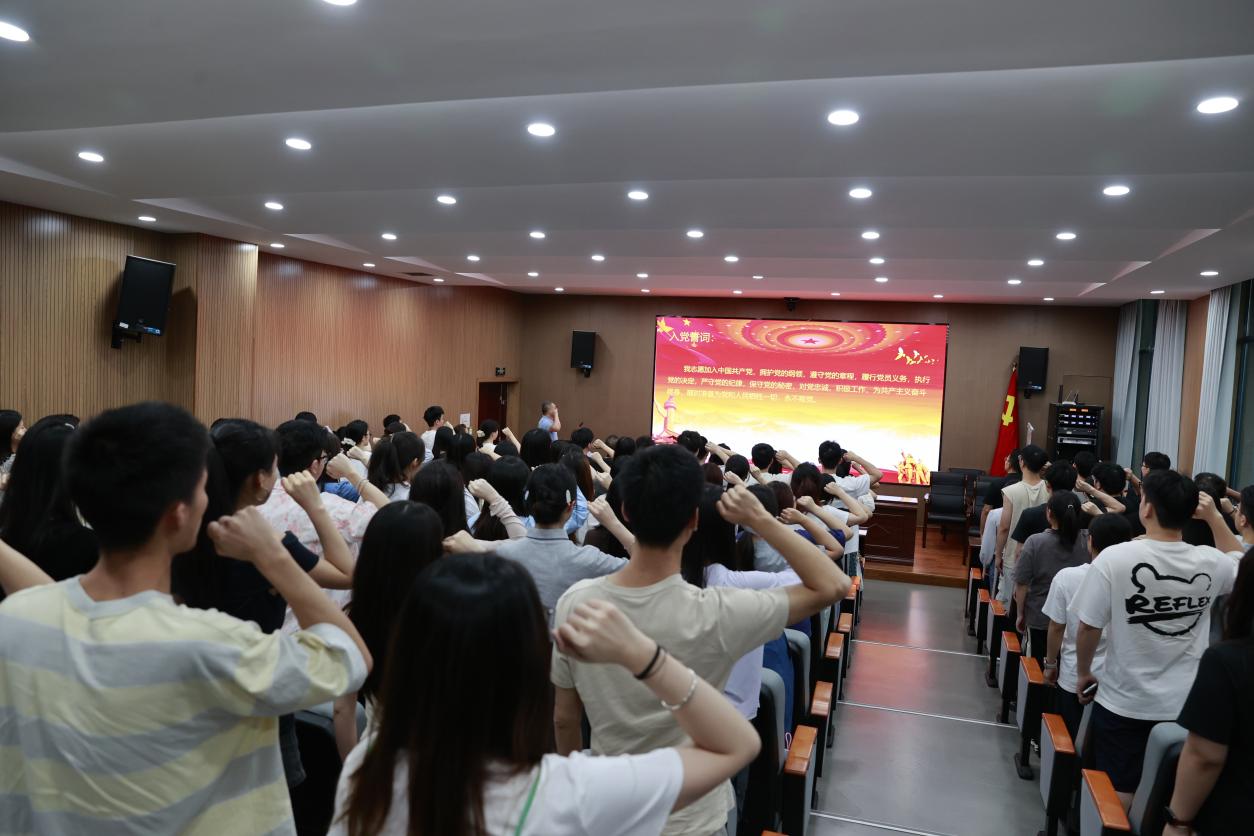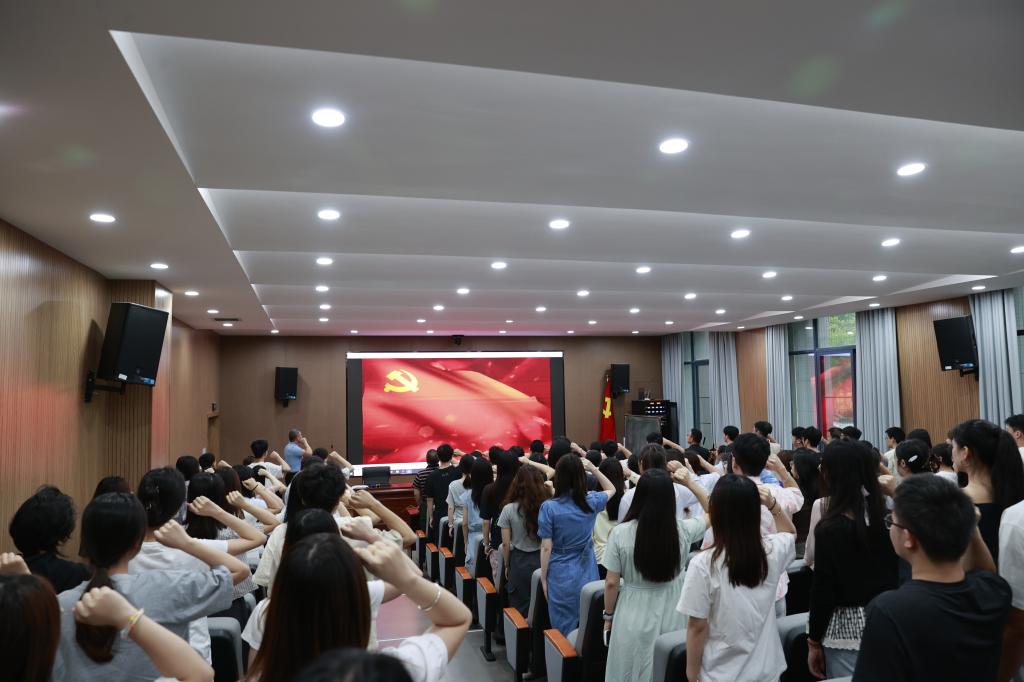 接着,在学院党委副书记袁小于同志的带领下,全体党员面向党旗,高举右拳,重温入党誓词,字字句句彰显青年党员坚定不移的政治信仰和矢志奋斗的赤诚之心。袁小于副书记勉励大家要牢记入党誓词,永葆入党初心,以誓言为参照,用行动表决心。