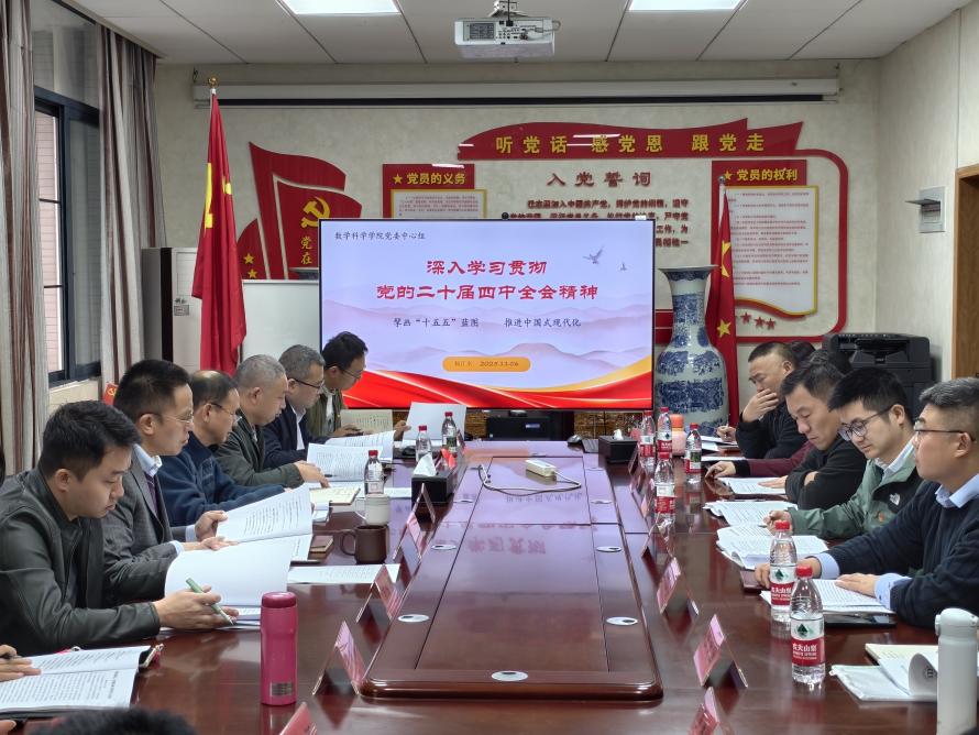 最后,杨江水书记作学习总结发言。他谈到,《习近平谈治国理政》第五卷收入的是习近平总书记从2022年党的二十大前夕到2024年底期间的重要著作,对于推动新时代党的创新理论武装头脑、指导实践、推动工作发挥了重要作用。本次中心组学习选择了“教育、人才、科技”专题来研讨,结合党的二十届四中全会精神,旨在推进教育、人才、科技一体发展,落实在学院工作上就是要深化一流学科建设,建立人才培养和引进机制,激发人才活力和挖掘人才潜力。要加强党建引领,注重人才培养,突出数学问题在关键核心技术攻关,加强科研项目储备,久久为功,砥砺奋斗,推进学院更大发展。在宗教工作上,要助力学生建立正确的三观,严禁在高校中传教,党员团员和师生不得信仰宗教,不得传播宗教。对于来校来访交流的国际专家和学生,要加强中国法律法规和国情教育,明确不得向中国公民传教和非法开展宗教活动。在保密工作上,要推进《中华人民共和国保守国家秘密法》落地,要意识到保密工作与国家安全的高度关联,对于学院部分工作材料、未经公开的科研项目、考试命题等需要高度保密的内容,相关工作人员要严守保密原则,落实规范化管理。