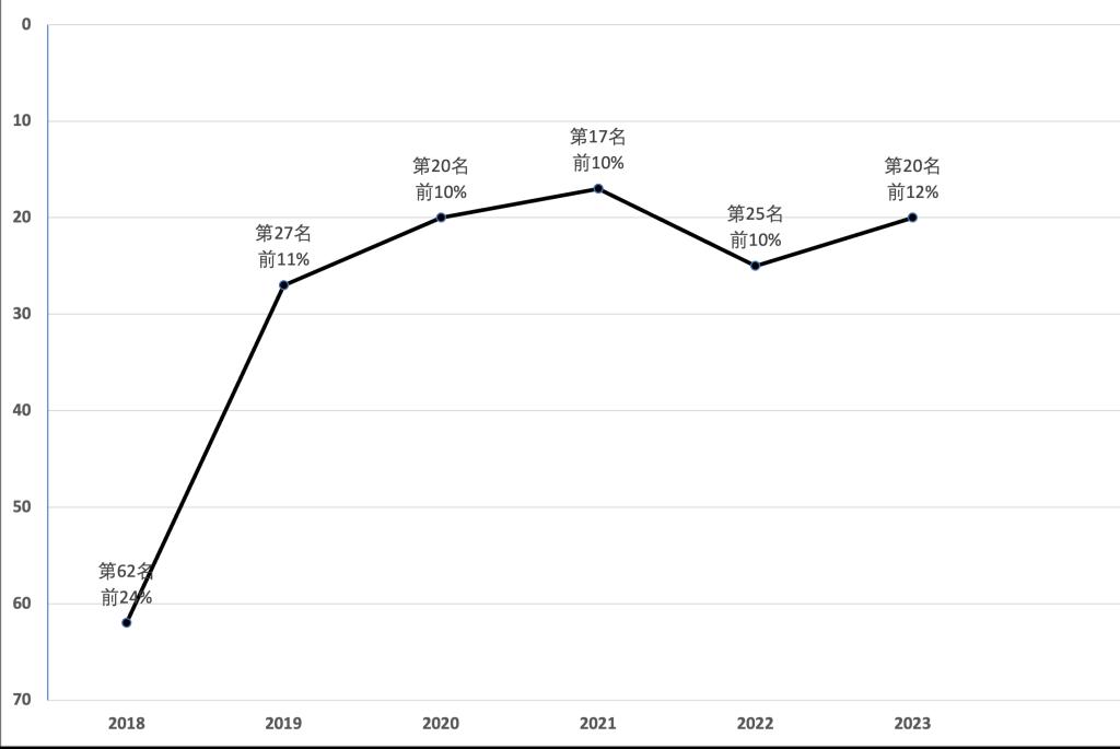 2023“软科中国最好学科排名”榜单包括98个一级学科,各个学科排名的对象是在该一级学科设有学术型研究生学位授权点的所有高校,发布的是在该学科排名前50%的高校。指标体系包括人才培养、平台项目、成果获奖、学术论文、高端人才5个指标类别,下设18个指标,共计70余项反映学科竞争力的客观量化指标。我校数学学科在“软科中国最好学科排名”榜单中,近几年来持续取得好成绩,连续四年保持在前10%位次,为争创一流创造条件。