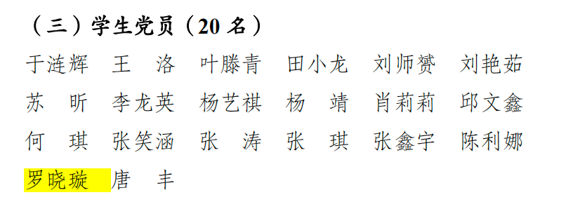 运筹与统计系党支部李国权、应用数学系党支部王艳、政治辅导员李亚、研究生三党支部罗晓璇获评校级“优秀共产党员”。