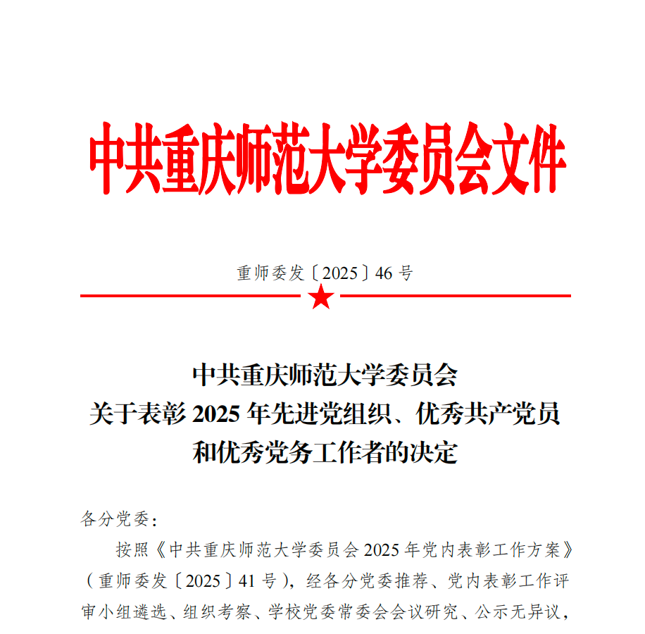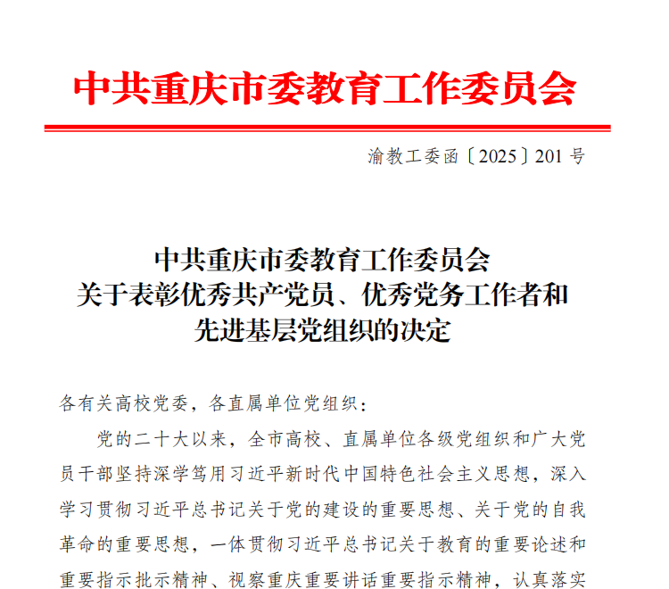 7月1日,太阳集团tcy8722党委喜获重庆市“先进基层党组织”。