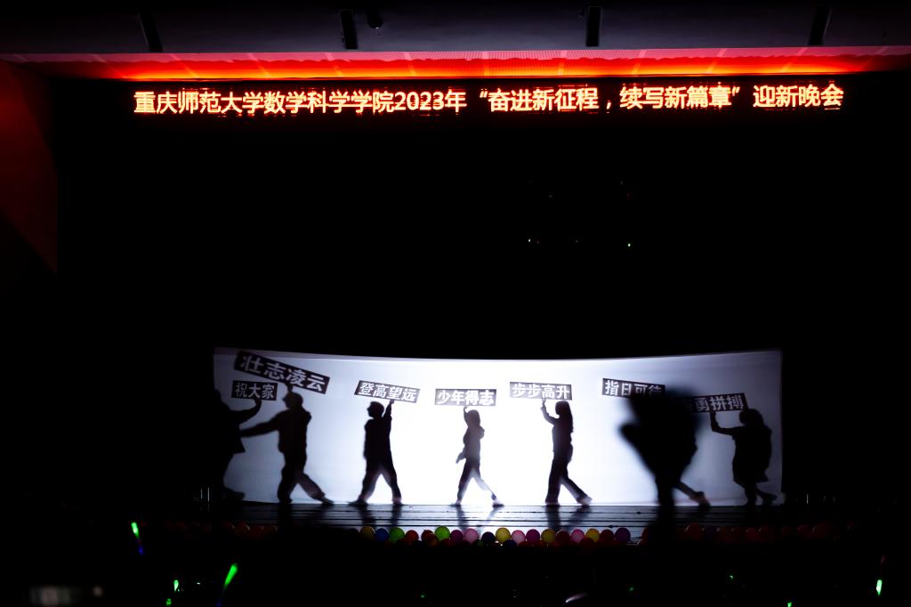 2023年12月12日晚,太阳集团tcy87222023年 “奋进新征程,续写新篇章”迎新晚会在校友会堂演出厅成功举办。学校党委常委、副校长黄永宜,学工部部长、学生处处长胡小强,招生就业处处长冉久飞,校团委书记高菁励莅临指导,太阳集团tcy8722和重庆国家应用数学中心党政领导、900余名教师和学生代表观看晚会演出。