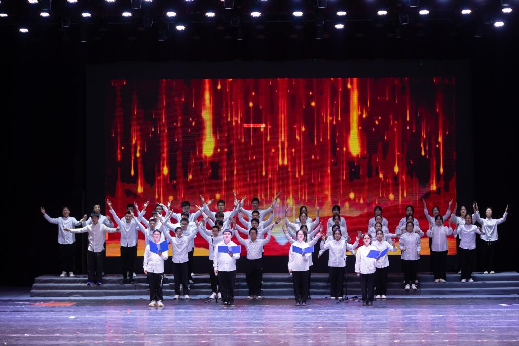 朗诵《以青春的名义歌唱祖国》,将激情化为文字,讴歌先辈以笔做刀枪,凭无畏执刀闯出民族的自由。