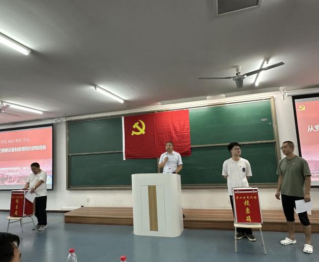 随后,全体党员起立,奏唱《国际歌》。 党委书记杨江水教授带领老党员重温入党誓词、新党员入党宣誓 。300余名党员高举右拳,面向鲜艳党旗,重温这段庄严的入党誓词誓言:“我志愿加入中国共产党,拥护党的纲领,遵守党的章程,履行党员义务,执行党的决定,严守党的纪律,保守党的秘密,对党忠诚,积极工作,为共产主义奋斗终身,随时准备为党和人民牺牲一切,永不叛党。”铿锵有力的誓词在教室久久回荡,为青春注入更为深刻的意义,为信仰奏响最激昂的乐章!