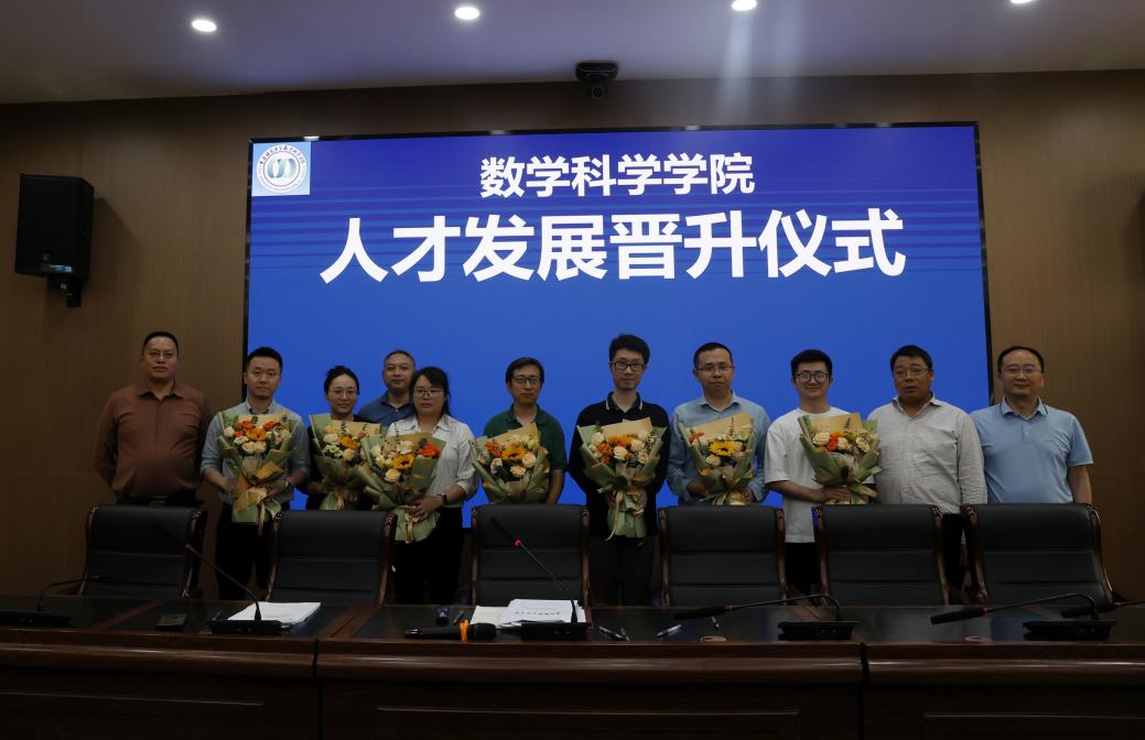 之后,我院隆重举行2024年度人才发展晋升仪式,表彰在职称评聘、市级及以上人才项目有所斩获的教师。杨江水书记宣读了在职称评聘、市级及以上人才项目有所斩获的教师名单。郭朝会、周双、冯泽夫、雷力、莫长鑫5位教师在2023年度职称评聘中获得晋升,张文萌、许秋菊2位教师在2023年度获得市级及以上人才项目。杨书记代表学院恭喜7位教师在上年度取得成绩,号召全体教师学习标杆,激励大家勤奋努力、奋勇争先、建功立业。学院党政领导为7位教师赠送了鲜花和祝福,并合影留念。
