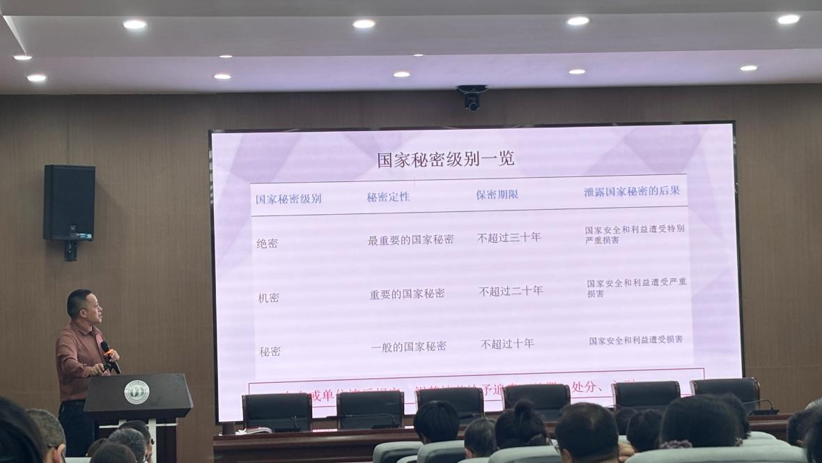 接着,杨书记组织学习新修订的《中华人民共和国保守国家秘密法》。他详细介绍了国家秘密的定义、范围、密级、保密期限等内容,并指出高校教师泄露国家秘密的8种风险。杨书记强调,学院师生员工要深刻认识到做好保密工作的必要性、紧迫性,认真学习贯彻新修订的保密法,不断提高师生员工保密工作能力水平,确保党和国家秘密安全,为学院事业健康发展创造良好的环境。