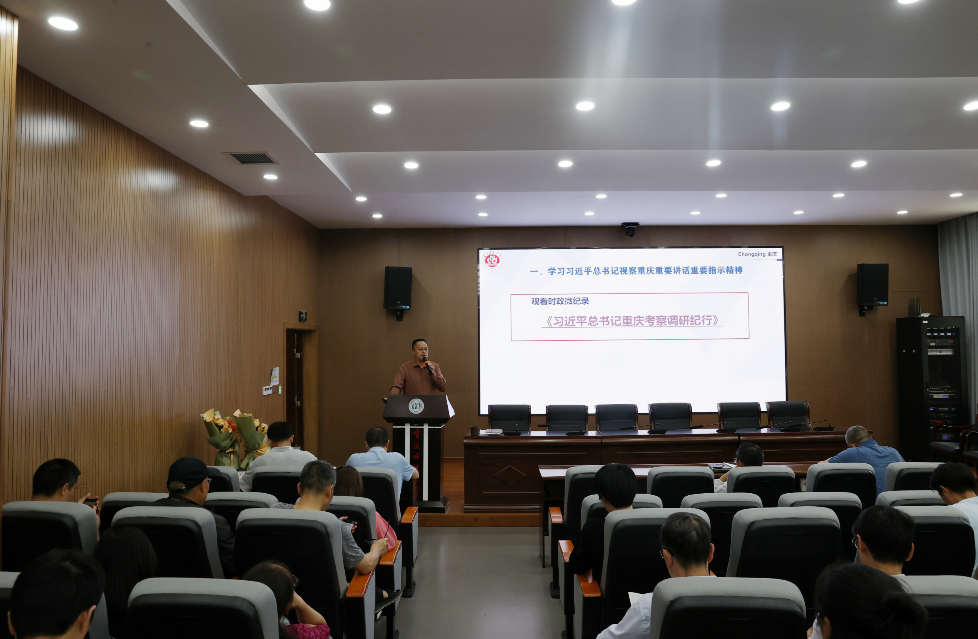 首先,学院党委书记杨江水带领大家集体观看了《习近平总书记重庆考察调研纪行》的新闻视频。杨江水书记指出,党的十八大以来,习近平总书记三次亲临重庆视察,对重庆各项工作取得的成绩给予充分肯定,是重庆发展历程上极具历史性、标志性、里程碑意义的大事要事、喜事盛事,充分彰显了习近平总书记对重庆一以贯之的关心关爱,对重庆人民的深情厚谊,让我们备受鼓舞、倍感振奋、倍增信心。他强调,我们要深刻领悟习近平总书记对重庆提出的“两点”定位、“两地”“两高”目标、发挥“三个作用”的重要指示要求,对接国家和地方需要;聚焦立德树人、聚焦本科教育评估、聚焦学科专业优化布局、聚焦学生就业创业、聚焦人才强院、聚焦管党治党责任,为建设全国有影响力、西部前列、具有“一流党建、一流学科、一流专业、一流人才、一流成果、一流管理”的教学研究型学院建设提供坚强政治保障。