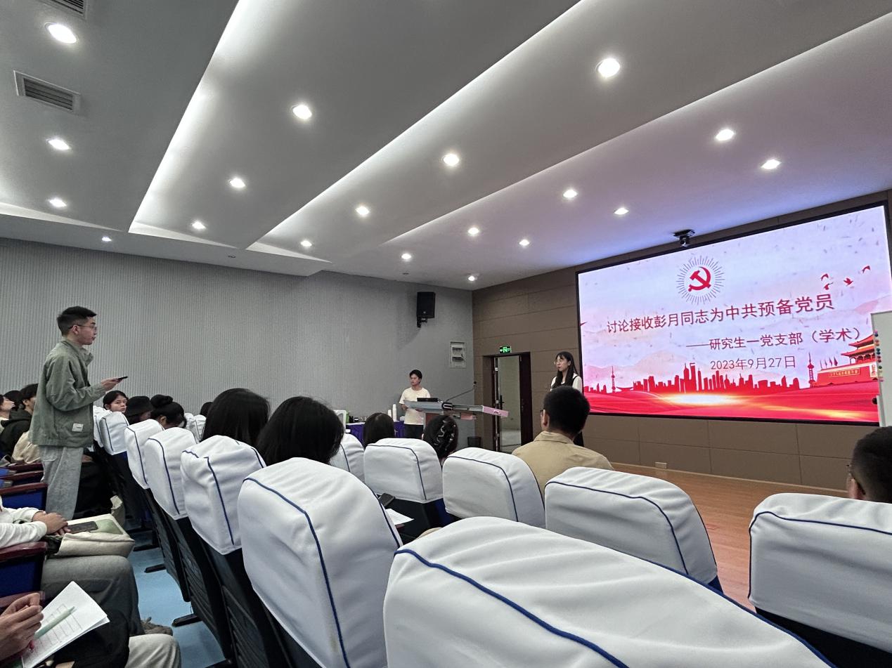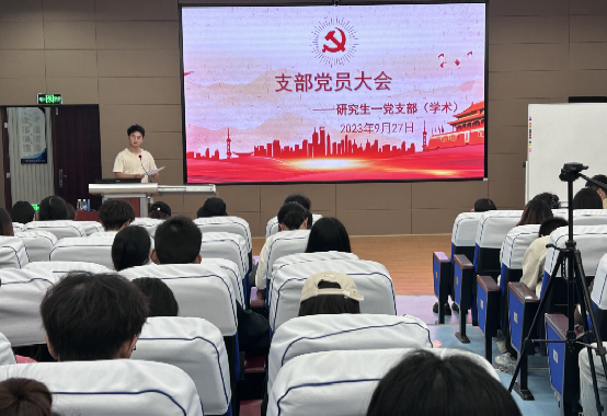 2023年9月27日,研究生一党支部(学术)在国家应用数学中心115召开支部党员大会。本次支部大会共两项议题:第一项议题:欢迎我们新生(研一、博一)党员加入研究生一党支部(学术);第二项议题:讨论接收彭月等6位同志为中共预备党员;89位党员同志参加会议,会议由支部副书记冉诗建同志主持。