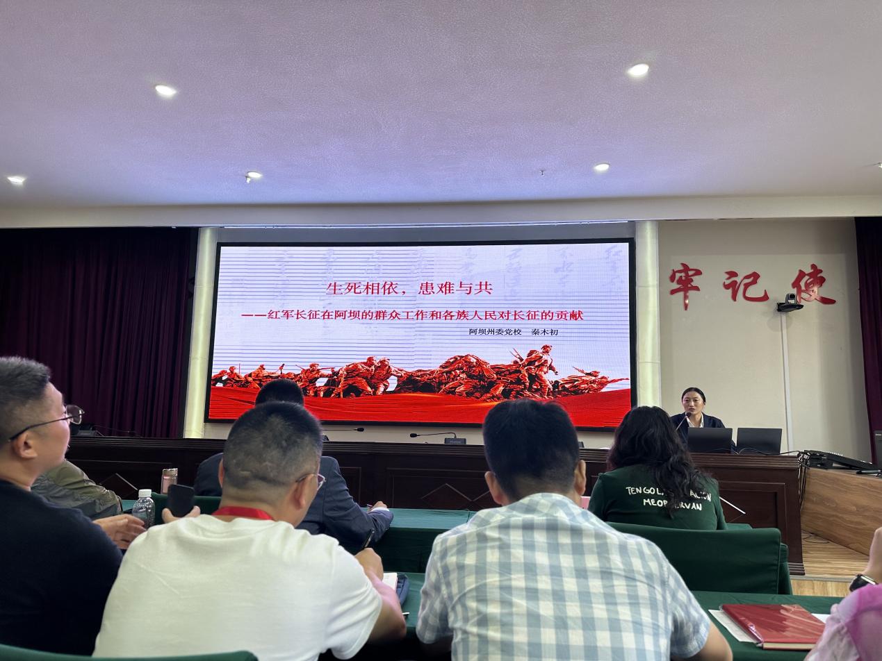 19时,秦木初老师以“生死相依 患难与共——红军长征在阿坝的群众工作和各族人民对长征的贡献”为题,以红军领导各族人民创建革命根据地,开展反帝反封建的革命斗争和阿坝各族儿女为支援红军做出的巨大牺牲和重要贡献的历史事实,对提升班学员进行理想信念、革命传统、民族团结教育的专题辅导。
