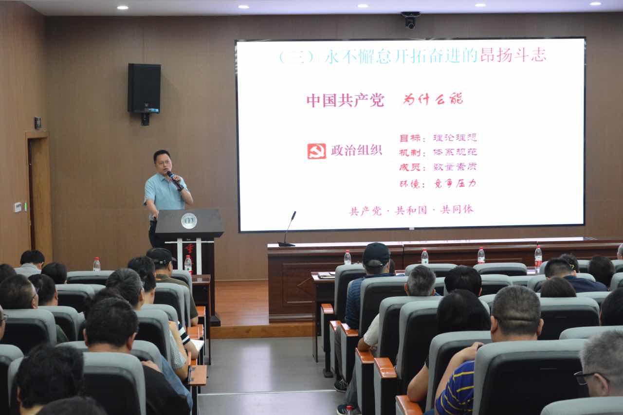 首先,杨江水书记从“中国共产党为什么能”“马克思主义为什么行”“中国化马克思主义为什么行”“中国特色社会主义为什么好”三个方面介绍了主题教育活动的意义、价值和作用。杨书记表示,开展主题教育是持续不断实事求是的理论武装,体现我党自我革命自我纠偏的精神境界和永不懈怠开拓奋进的昂扬斗志。正是因为有这种理论武装、精神境界、昂扬斗志,初心不忘,使命担当,我们才能够分阶段完成一代又一代人的使命担当,充分体现了“功不在我,功必有我”的共产党员的政治品质。开展主题教育活动就是进一步纯洁思想、纯洁组织、纯洁作风、纯洁机体,不断统一思想,理论武装再出发,推进实现新的奋斗目标。