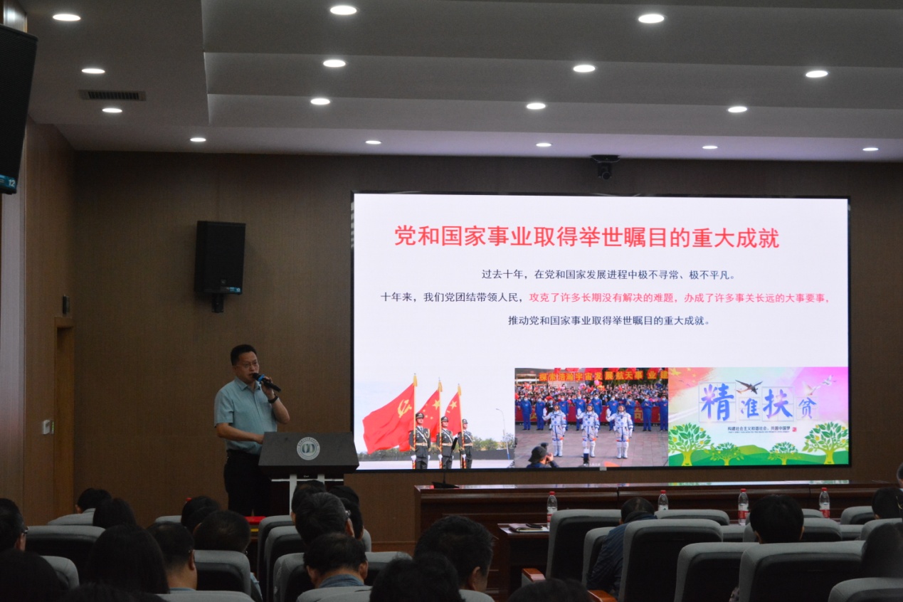 接着,谈到习近平新时代中国特色社会主义思想精髓,杨江水提到习近平新时代中国特色社会主义思想是在中国特色社会主义进入新时代的历史条件下形成的,是在科学社会主义焕发新生机、两种社会制度的较量呈现新态势的时代背景下形成的,是在百年不遇的世界大变局中形成的,是在党的十八大以来党所经历的深刻革命性变革锻造中形成的,这是时代的重大理论成果。习近平新时代中国特色社会主义思想,深化了对共产党的自身建设规律的认识,展现了新时代马克思主义执政党强大的创造力、凝聚力和战斗力。新时代十年的伟大变革、历史性成就根本在于习近平总书记作为党中央的核心、作为全党核心掌舵领航,在于习近平新时代中国特色社会主义思想科学指引下,“两个确立”也就应运而生。杨书记讲述了习近平新时代中国特色社会主义思想的核心要义、核心内容以及丰富的理论品质及马克思主义立场观点方法。他强调,习近平新时代中国特色社会主义思想充满着对马克思主义的坚定信仰,充满着对共产主义、社会主义的坚定信念,充满着“革命理想高于天”的豪迈情怀,而“人民至上论”和“人民幸福论”将这一思想体现得淋漓尽致。坚决做到“两个维护”是解决百年大党独有难题的内在要求,是实现新时代新征程新使命新任务的根本保证,也是应对重大风险挑战的根本政治保证,全院师生要努力做到:党中央号召的坚决响应、要求的坚决照办、禁止的坚决不干、部署的坚决落实,真正做到在思想上、政治上、行动上同以习近平同志为核心的党中央保持高度一致。