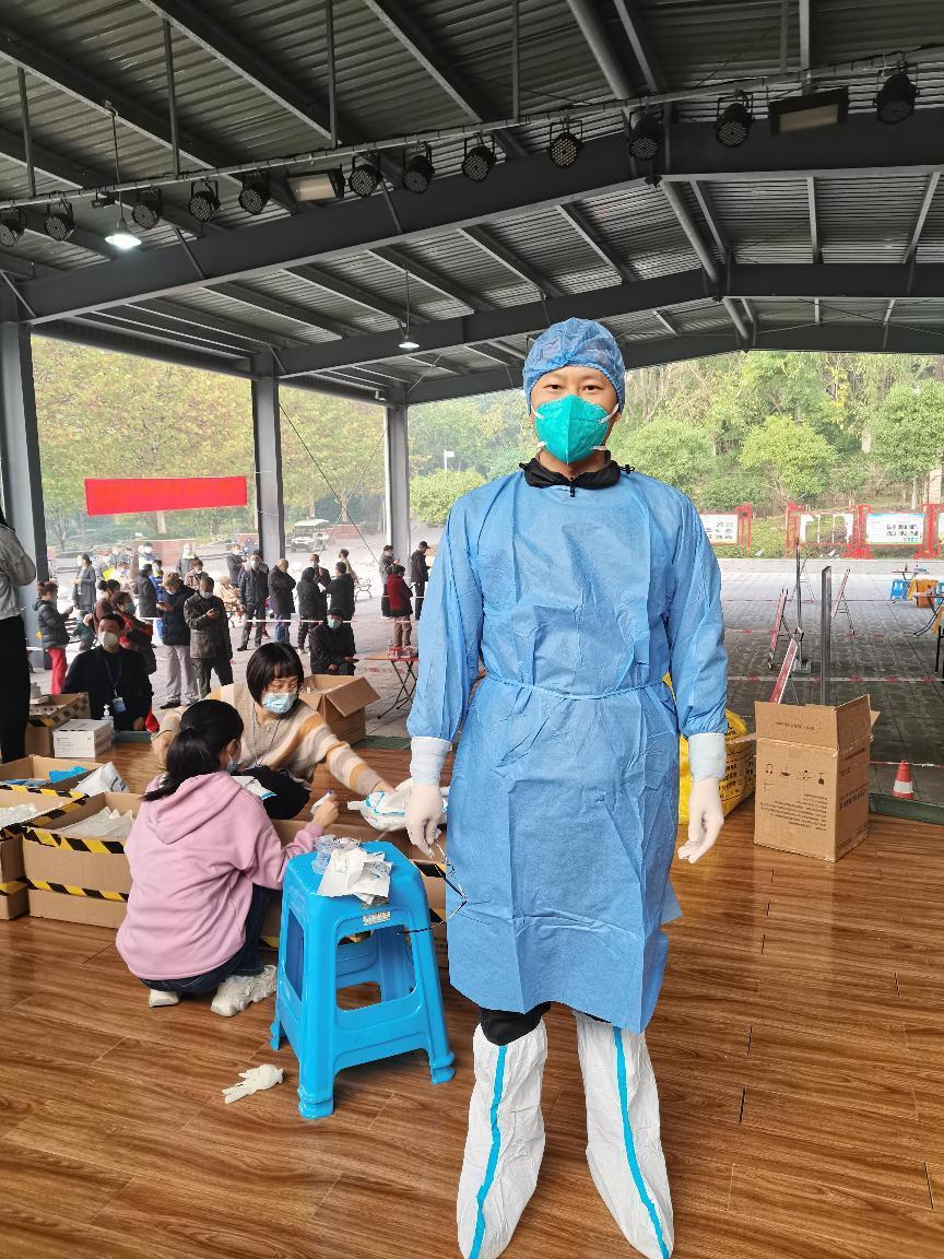 当天,学院工会副主席张振亮老师在师大苑小区核酸检测点进行核酸登记。