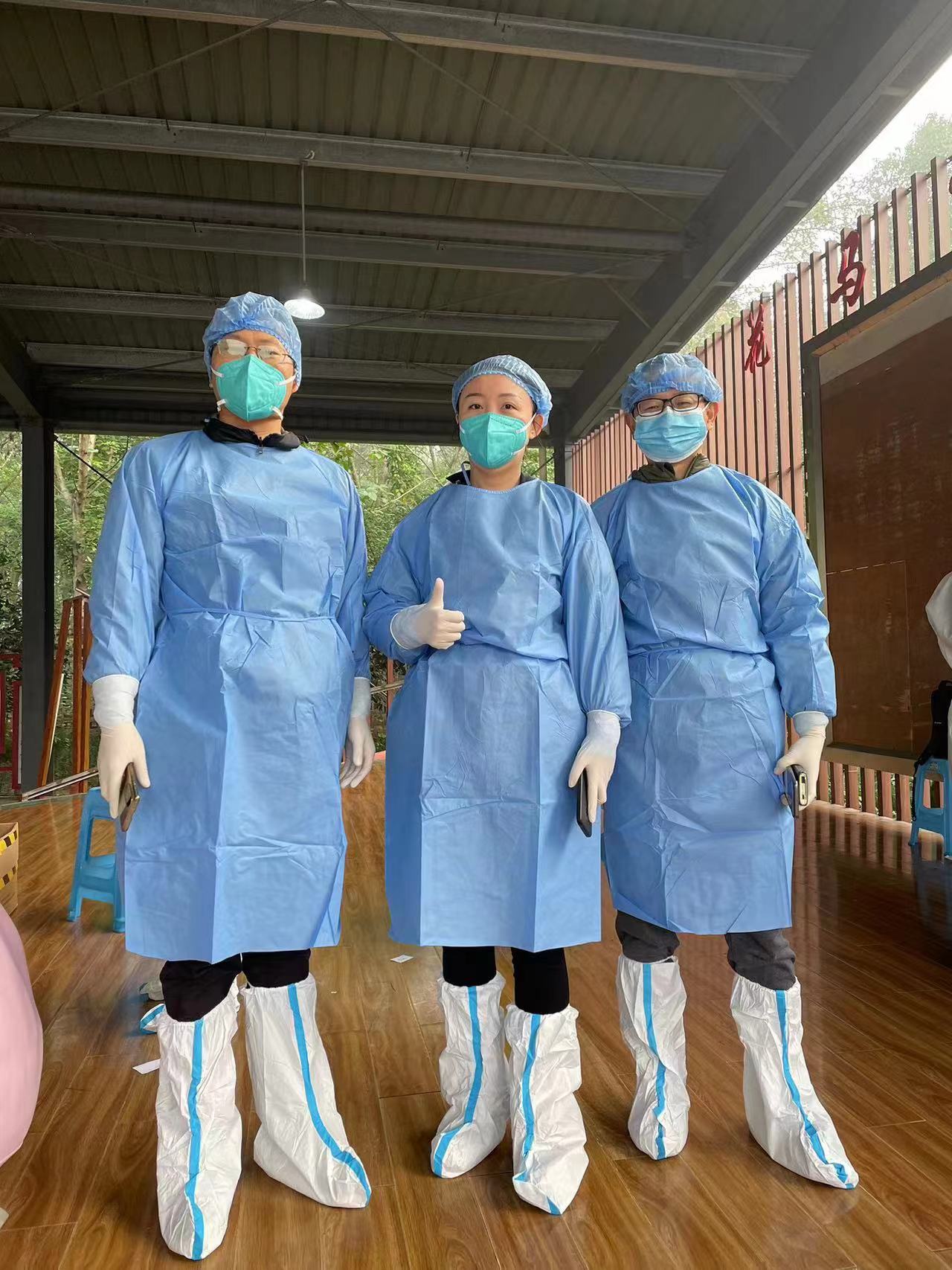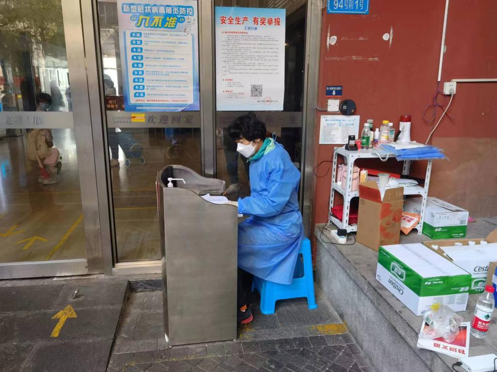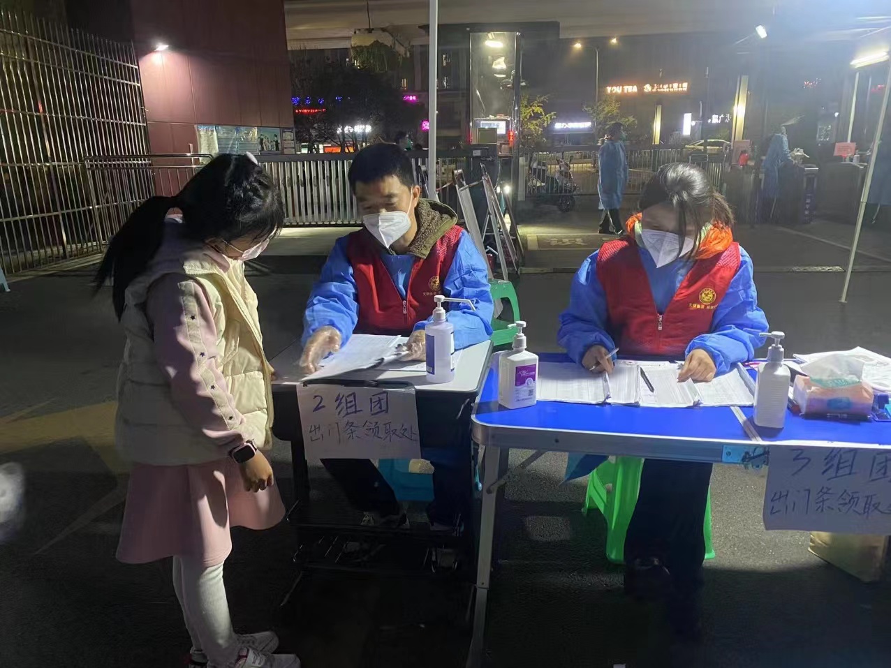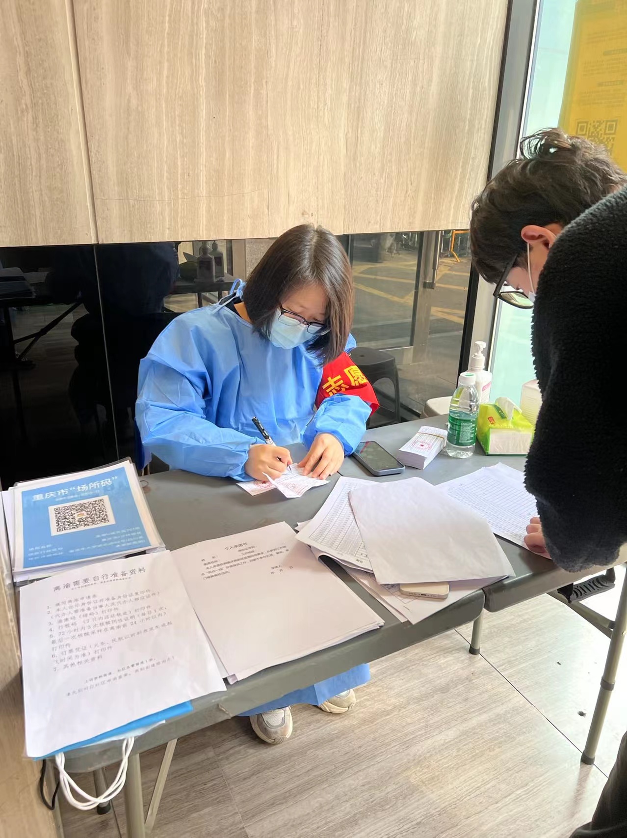 11月19日上午,教科办主任刘芙萍老师在龙湖U城一组团1-1楼栋,协助核酸检测,开出门条,并且检查进出口的出门条。