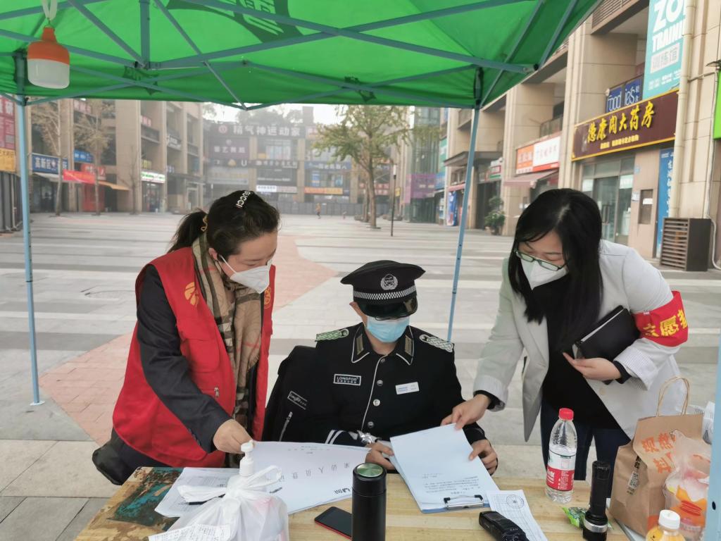 晚上,学院郭岚老师在u城北区做登记工作和劝导工作,主要负责出门条发放和劝导居民尽量不出小区。