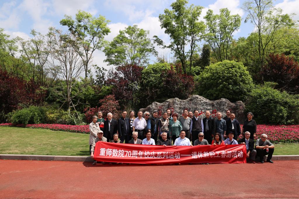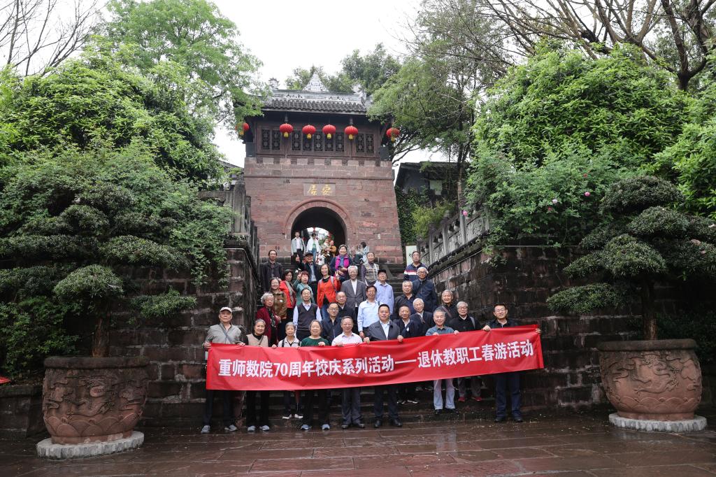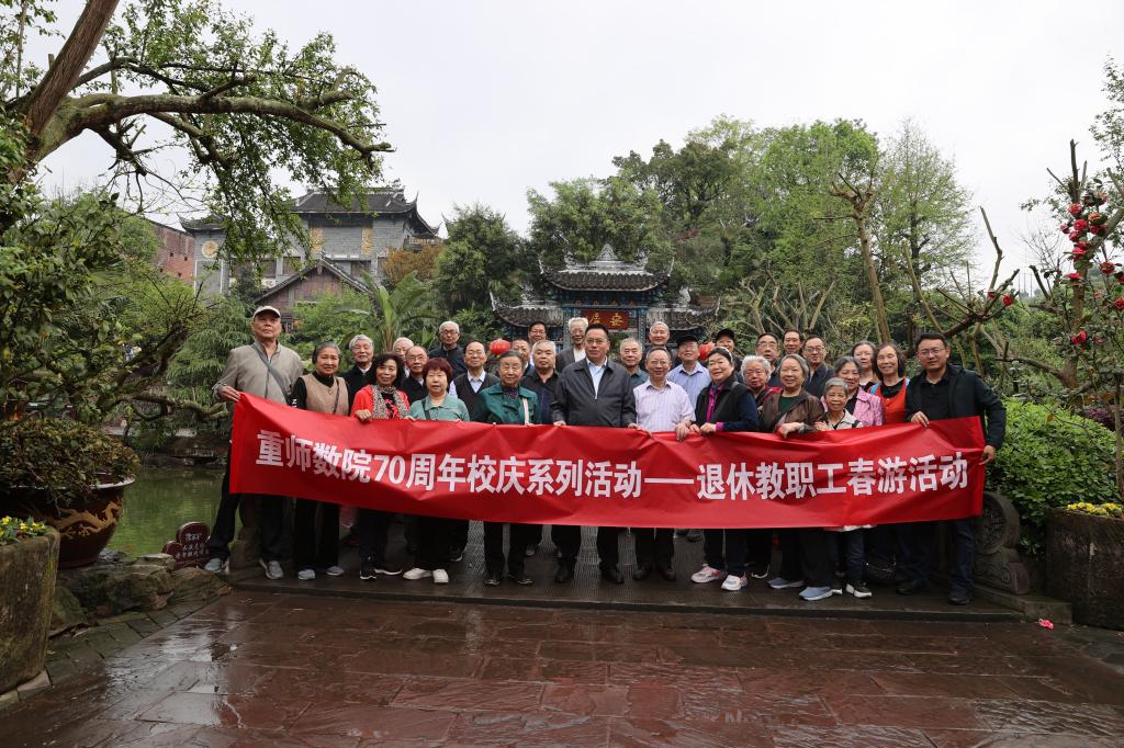 阳春四月春意盎然,正是踏青好时节。正值学校70周年校庆之际,为体现学院对退休老同志关心关怀,加强学院和退休老师交流联系,丰富老同志精神文化生活,促进老同志身心健康。4月2日,学院组织29位退休教职工前往铜梁安居古城和玄天湖开展春游活动。党委书记杨江水陪同前往。