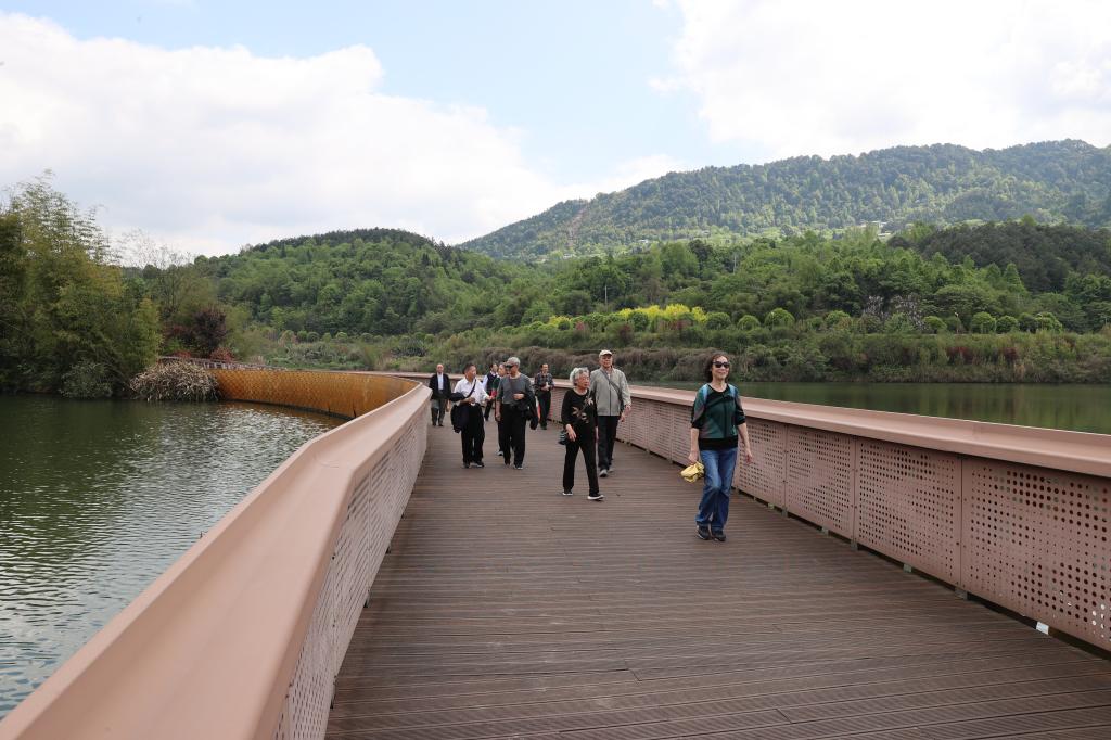 下午,退休老师们前往铜梁玄天湖游览。相比于古镇沧桑,玄天湖生机盎然,10公里的环湖道上,湖光山色,美不胜收。老师们走过两边的红色梅花娇艳欲滴的林间步道,畅游横跨玄天湖似游龙般蜿蜒曲折的浮桥,纷纷拍照留念,记录祖国大好河山的风景和老师们多年的工作情谊。