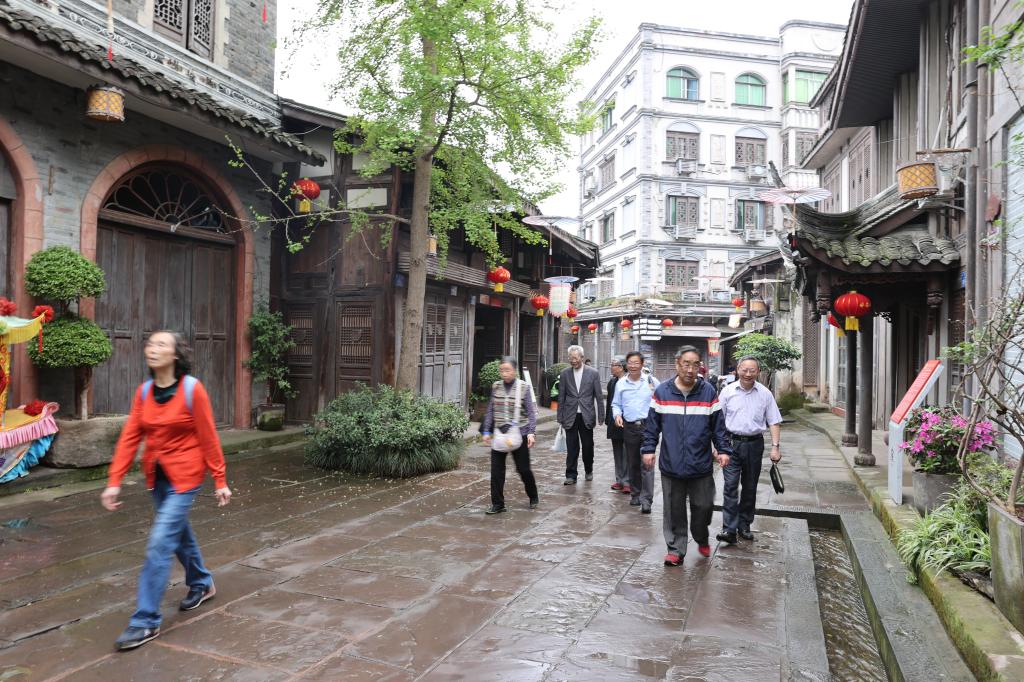 铜梁安居古城始建于隋朝,原名赤水县,距今已有1500多年历史,是重庆市批准的20个历史文化名镇之一,于2008年授予第四批中国历史文化名镇。退休教职工们沿着古城大道,途径古城名居、星辉门、天后宫、火神庙,跨过会龙桥,沿着古城溪流,先后参观刘伯承秘密居住遗址、鹤瑞亭、迎龙门等景点。退休老师们行走古城街道,抚摸石碑砖墙;站在涪江边畔,远眺绿水青山。他们欣赏着古城街道的风景,体会其中的静谧、古老,感受历史长河中的点滴。
