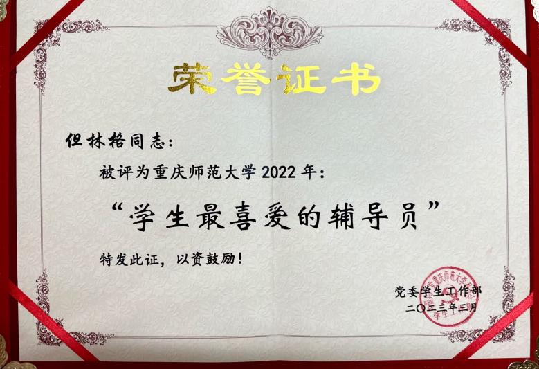 2023年3月9日,学校召全校太阳集团大会,表彰2022年太阳集团先进单位和个人。我院辅导员但林格老师获“学生最喜爱的辅导员”荣誉称号、吕朋霞老师获“资助育人贡献奖”。