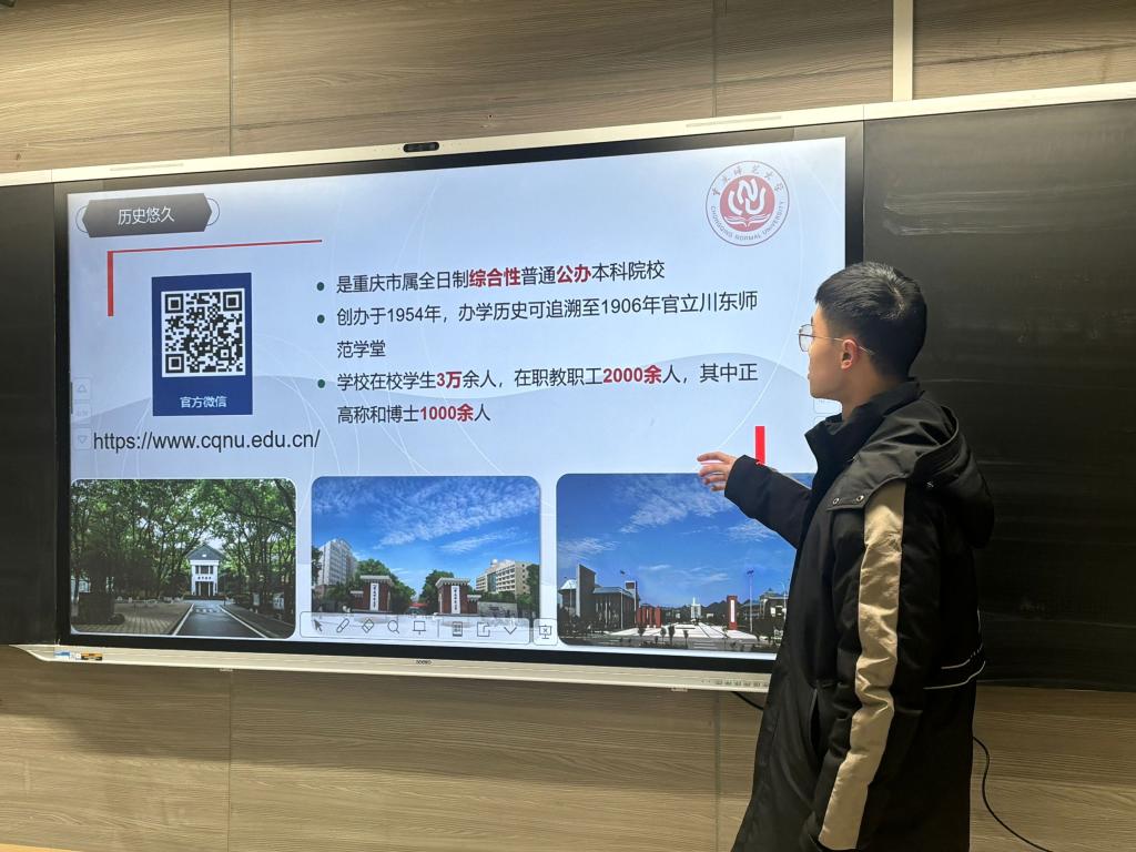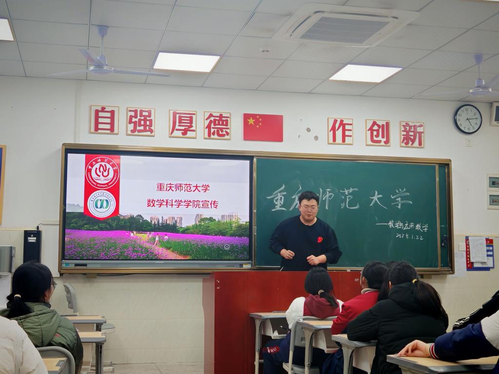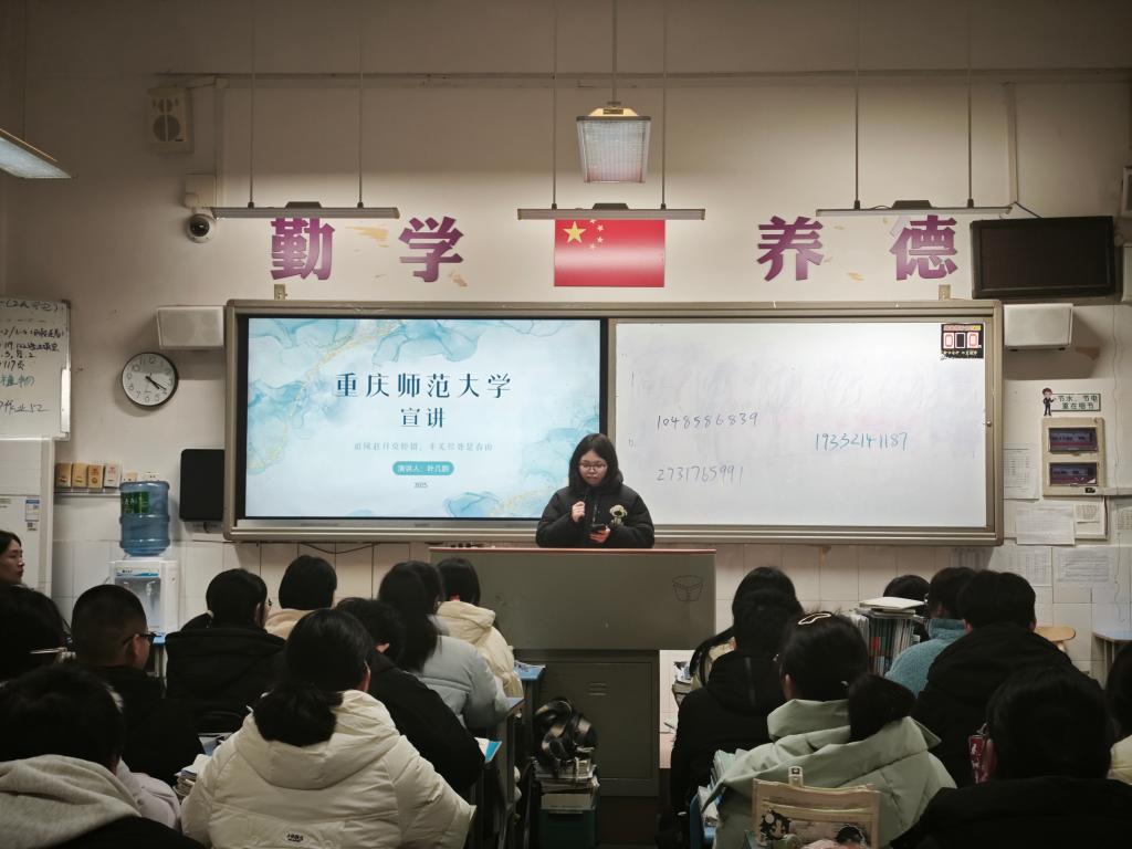 2024级数学与应用数学(师范)1班的叶几韵同学回到高中母校——重庆市长寿中学校开展宣讲。她表示此次活动不仅让她重温了那段美好的高中时光,同时也锻炼了表达能力和自信心;希望通过自己的分享,能帮助学弟学妹们明确自己的目标,期待未来在重庆师大与他们相遇,共同成长!