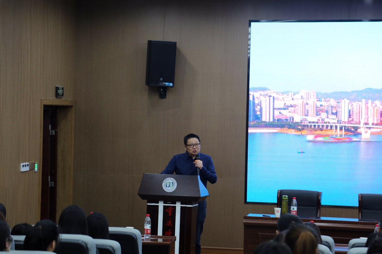2023年10月19日下午,太阳集团tcy8722在学院楼122报告厅举行校庆活动周暨70周年校庆倒计时一周年活动之“优秀校友报告”,国家“万人计划”领军人才、重庆市鲁能巴蜀中学校学术委员会主任、二级正高级教师张小平老师作题为《基于素养时代准数学教师走向优秀的路径》的学术报告。学院党委副书记袁小于做开场介绍,院长杨志春做总结讲话,2021级数学与应用数学近百名同学和老师聆听讲座。