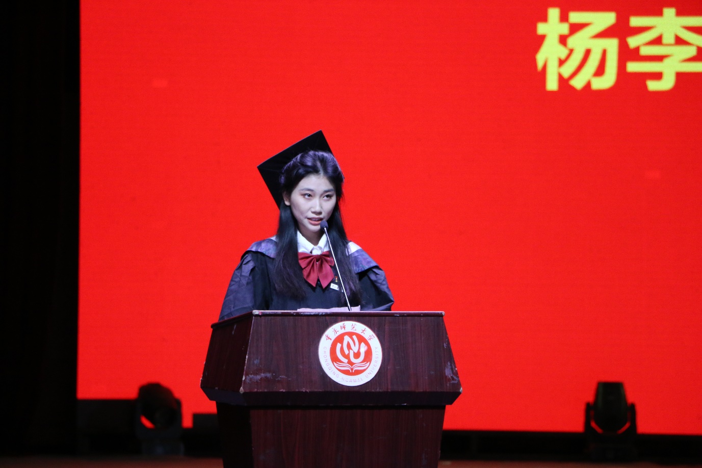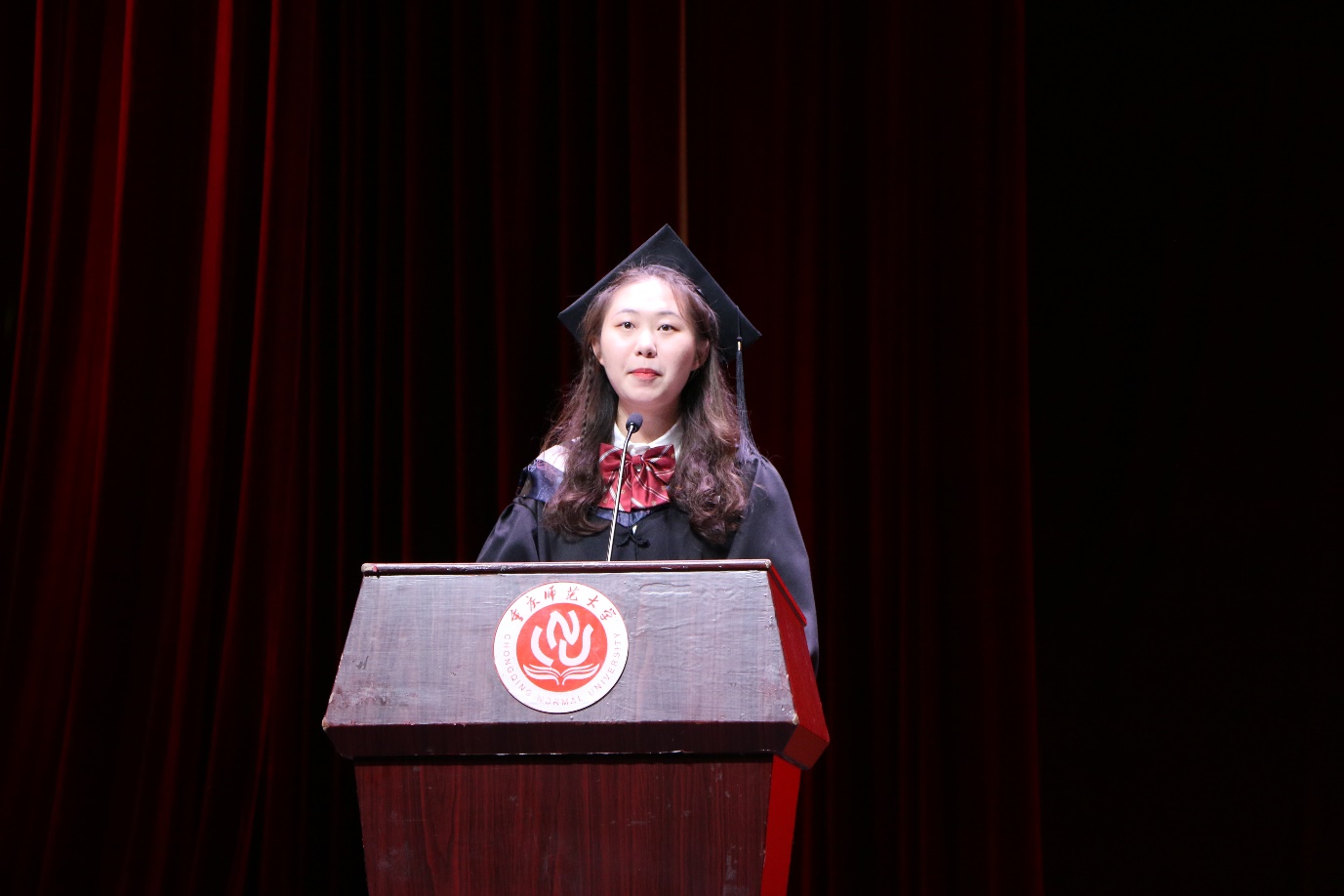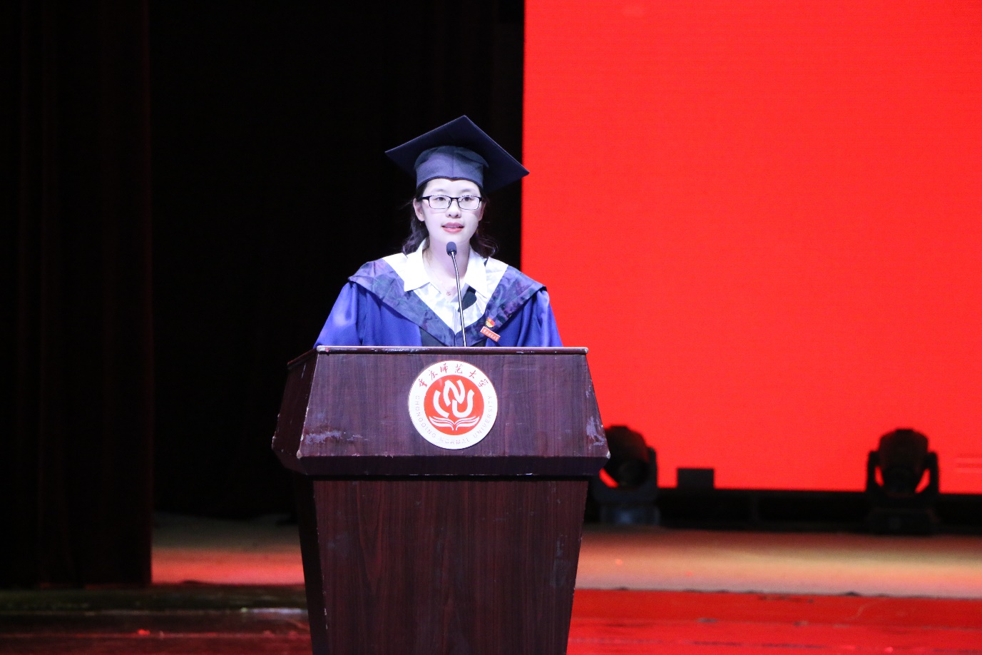 随后,硕士毕业生代表陈淑文、本科师范毕业生代表文雪冰、非师范毕业生代表杨李薇发言,由衷感谢老师们的谆谆教诲和悉心栽培。