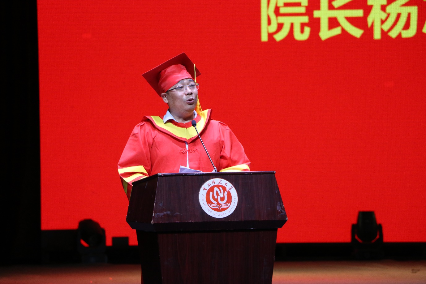 最后,杨志春院长在致辞中肯定2023届每位同学都成为了自己的英雄,大家同心协力战胜了新冠肺炎疫情,绝大多数同学都圆满完成了学业。杨院长指出,过去四年,同学们目睹了国家取得的伟大成就,也见证了学院取得的不俗成绩,作为见证者和亲历者甚至参与者,应该为作为“重师数学人”更加充满底气。杨院长强调,毕业既是本阶段学业完成的终点,也是踏上人生新征程的起点。杨院长对毕业生提出三点希望:一是希望胸怀天下、志存高远,做拥抱时代的筑梦者;二是希望脚踏实地、终身学习,做永不放弃的追梦者;三是希望谦虚谨慎、乐观向上,做心存感恩的圆梦者。杨院长希望同学们通过奋斗拼搏,一定会成为祖国、母校、母院的骄傲,并衷心祝愿同学们前程花似锦,未来更可期。