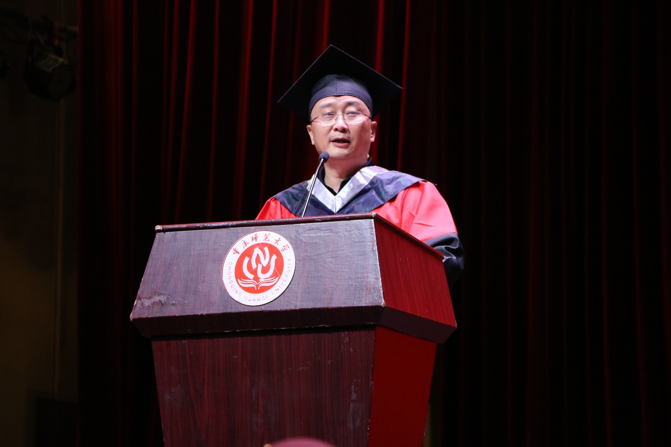 硕士研究生导师代表、运筹与统计系主任罗洪林教授发言勉励同学们要“准确定位,砥砺前行;持之以恒,奋斗不止;学无止境,书海无涯;播撒爱的种子,建设爱的家园”。
