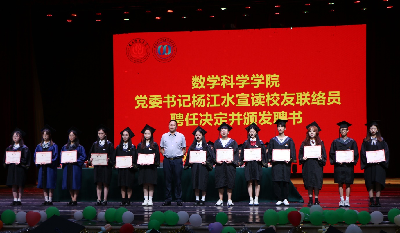 毕业典礼上,学院党委书记、院校友分会会长杨江水宣读2023届学院校友联络员聘任决定并颁发聘书 ,杨江水书记希望全体联络员切实发挥纽带作用,主动作为、积极献策,并就即将到来的70周年校庆向毕业生发出了热切的邀请 。
