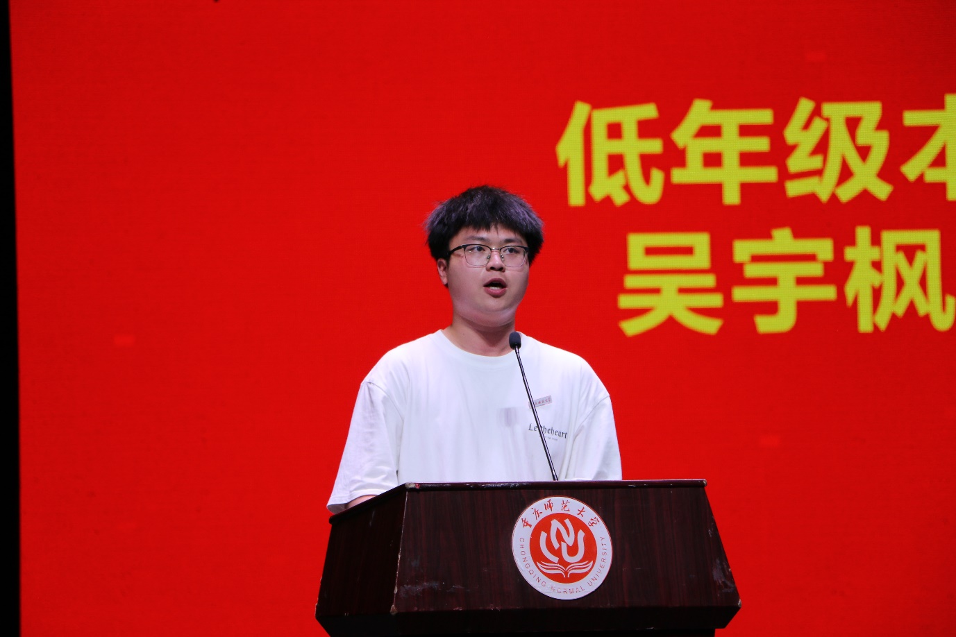 观礼的研究生于锦粤、本科生吴宇枫作为低年级代表上台发言,祝福2023届毕业生顺利毕业,希望他们不忘初心、努力奋斗、起好表率,用骄人的成绩回应大家的期待。