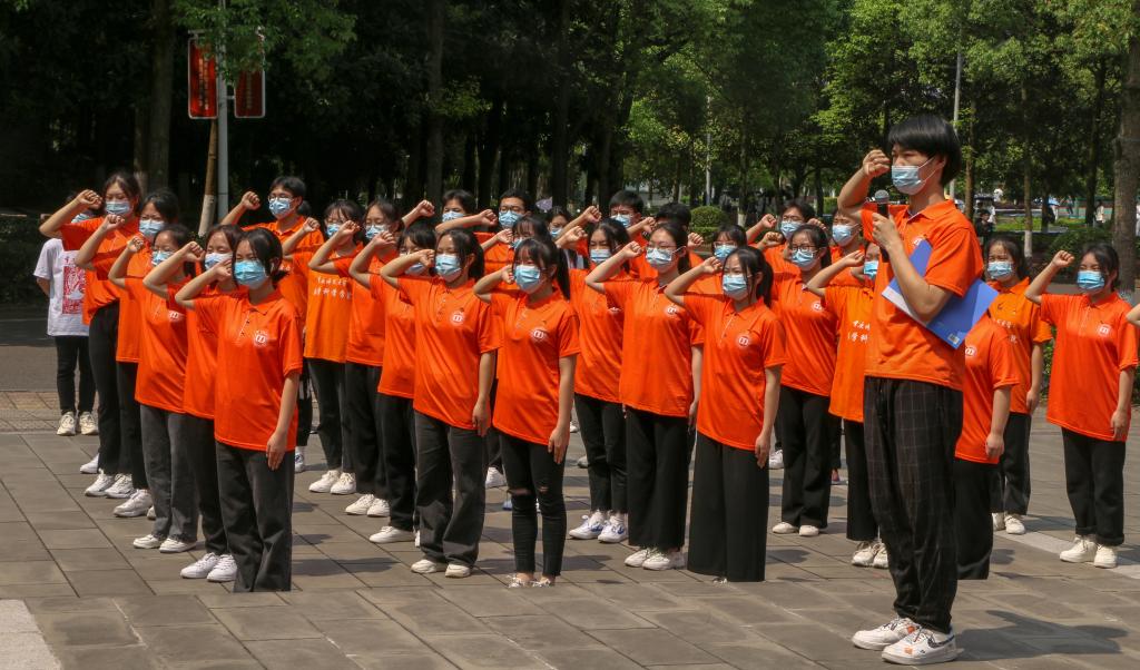 晴空中,“五四”的和风跨越时空而来;骄阳下,全体团员一起进行宣誓。那誓言回荡在这一方天地,又连结起这百年的历程;又一代共青团员踏上征程,为共产主义事业而努力奋斗,为中华民族伟大复兴的中国梦砥砺前行!