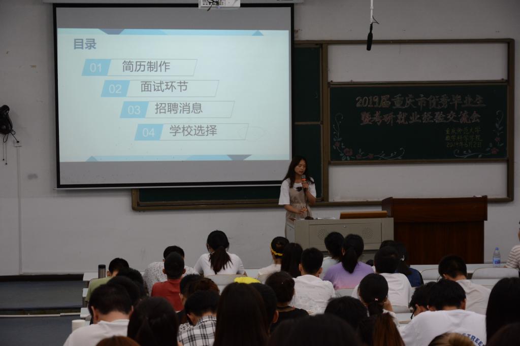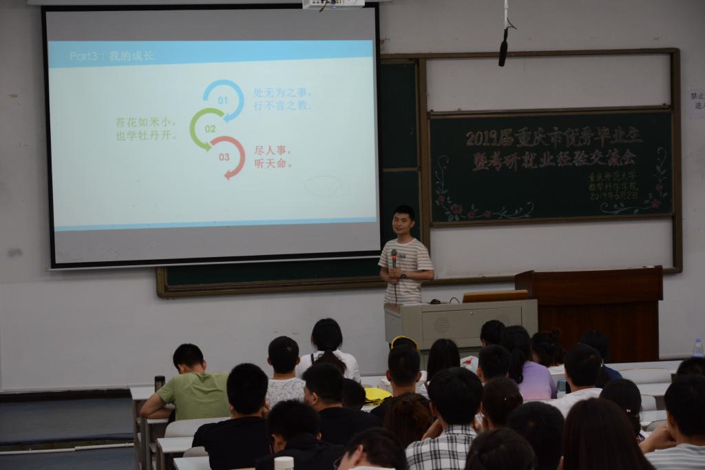 2019年6月2日,太阳集团tcy87222019届重庆市优秀大学毕业生暨考研就业经验交流会于图北楼17101举行,太阳集团tcy87222016级全体学生到场聆听。