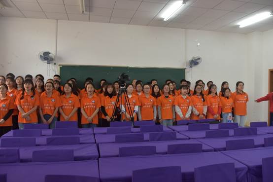 首先,由主持人杨雪同学上台宣布活动开始。在全场扶凳起立共唱共青团歌之后,激情洋溢的歌声感染了在座成员,怀着热情似火的雄心与积极,2017、2018级各个团支部支书依次上场,从学习、生活、支部建设等各个方面对自己支部做出总结。有的支部专业课成绩十分优秀;有的支部热衷于数学竞赛、迎新杯、迎新晚会、志愿者活动等积极向上的活动;有的班级自主设计班徽、书写班级誓言,并穿着班服、唱着班歌出现在现场,向大家昭示团结一心的态度,以歌声诉说着不负青春、不负韶华!