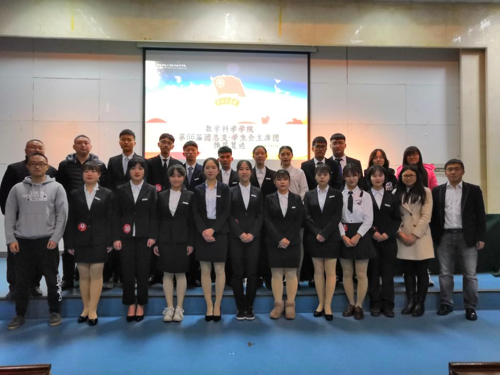 2018年12月27日晚,我院第66届团总支学生会主席团选举大会在图书馆陈性初报告厅举行。学院党委副书记袁小于老师,全体辅导员和班主任,各年级学生代表和兄弟学院观摩嘉宾同学共160余人参加了此次活动。活动由学院团总支书记、学工办主任程伟老师主持。