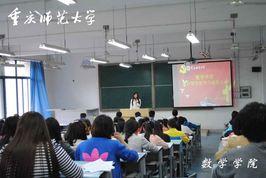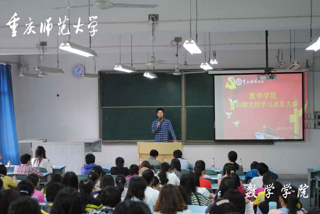 2013年5月7日下午13:00,数学学院在弘德楼15104隆重举行了第49期党校学习动员大会。院分党委委员、团总支副书记李鑫、2010级辅导员程伟、2011级辅导员韩彦坤、2012级辅导员王韵参加了本次大会。