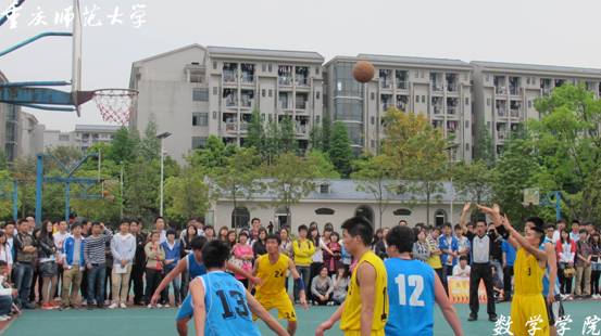 4月16日中午13:00,数学学院与经济管理学院进行冠军争夺赛,数学学院10级辅导员程伟老师和11级辅导员韩彦坤老师到现场为队员们加油助威。随着哨声响起,比赛便直接进入白热化阶段,我院篮球队员经过奋力拼搏,最终摘得“三好杯”篮球赛亚军。
