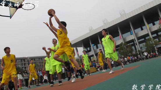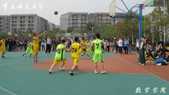 双方队员本着“友谊第一,比赛第二”的原则,相互友好示意之后跃跃欲试,一声哨响拉开了比赛的序幕。没有令人心潮澎湃的运动进行曲,只有场边随场上气势不由自主混成一体的数学学院啦啦队响亮的呐喊声震撼人心。比赛进行了三分钟,对方球员的一记犯规把我方队员张森送上了罚球线,不负众望顺利将球送进篮框,随后接连带球长驱直入,勾手上篮得分。化学学院也不甘示弱,在尝试各种防守和打法后也还以颜色,在激动人心的比拼中,数学人默契配合,以各种漂亮的转身、抢断、传球、投球姿势以41:25的优势赢得了本场比赛,为“三好杯”赢下了至关重要的首场比赛。