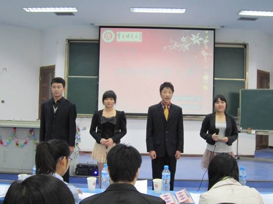 4月7日13:00,数学学院2009级说课大赛在弘德楼5105隆重上演。出席本次活动的嘉宾及评委有数学学院分党委副书记毛霞老师,王韵老师以及2007级优秀学姐彭捷、卓鸿兵。