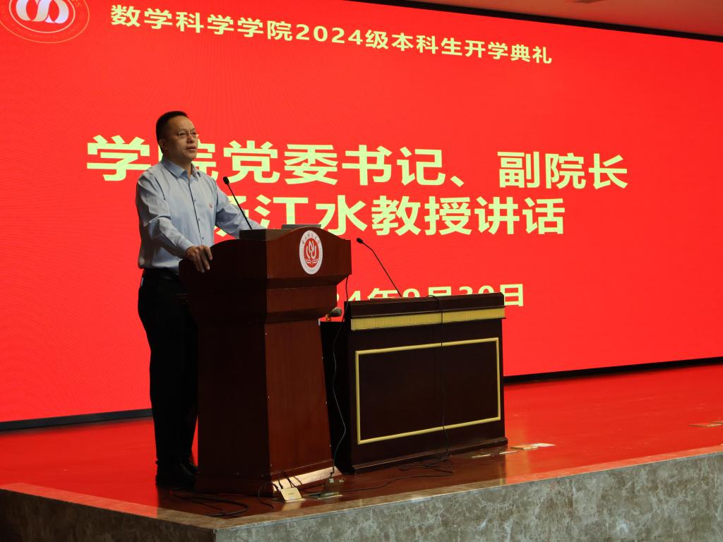 学院党委书记、副院长杨江水教授代表学院全体师生,对各位新生表示最热烈的欢迎和最衷心的祝贺!希望大家以重师数学人的身份开启崭新的求知之旅,开启人生发展新篇章。为助力同学们成长成才,杨书记向同学们提出六点希望: