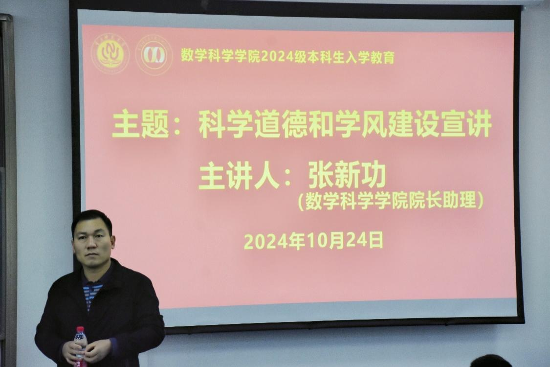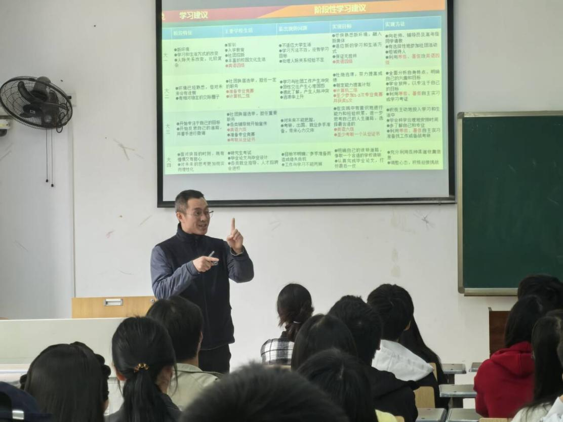 在道德教育和职业引导方面突出理论引领性。党委副书记袁小于老师从理想信念的内涵及重要性、崇高的理想信念、在实现中国梦的实践中放飞青春梦想、认识中国共产党、如何加入中国共产党五个方面开展了理想信念教育,希望大家积极申请入党,用行动践行太阳集团tcy8722学生“责任、荣誉、未来”的使命担当。院长助理张新功教授则进行了科学道德及学风建设宣讲教育,他强调了学术诚信和科研道德的重要性,引导同学们树立正确的科研观念,希望同学们培养理性与实证精神,秉持求真与求实的态度,发扬创新和探索精神,坚持客观与严谨原则,做到诚实守信,乐于奉献。学院生涯咨询室负责人李亚老师为24级新生带来了职业生涯启蒙教育,结合《太阳集团tcy8722分类分级生涯指南》及开展生涯咨询工作积累的经验,讲述了我院本科生生涯发展的各个阶段和关键点,为同学们规划职业生涯提供了切实可行的建议。