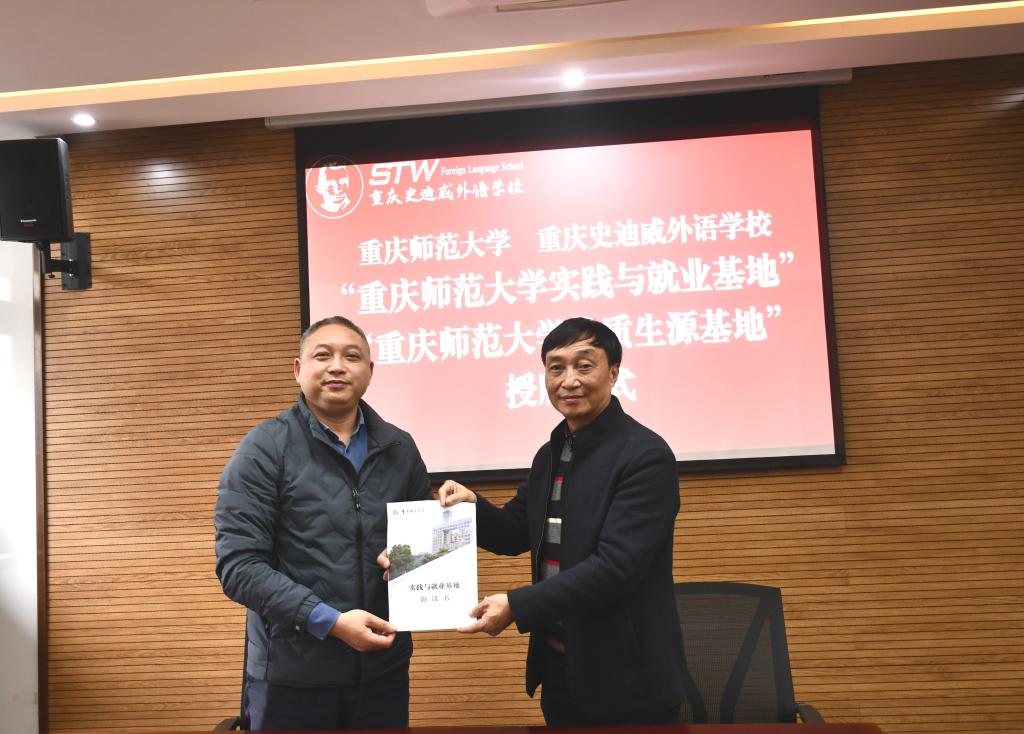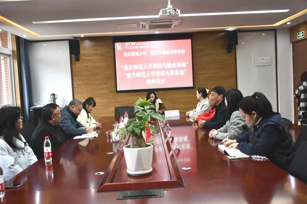双方就大学生实习实训、毕业生招聘要求、新教师待遇、新教师职业发展、学校招生和高考情况、签约违约处理等毕业生关心的问题进行了讨论交流。曾庆模校长和袁小于副书记代表双方签署了“实践与就业基地”协议书,并举行授牌仪式。最后,在曾校长的带领下大家参观了史迪威外国语学校。